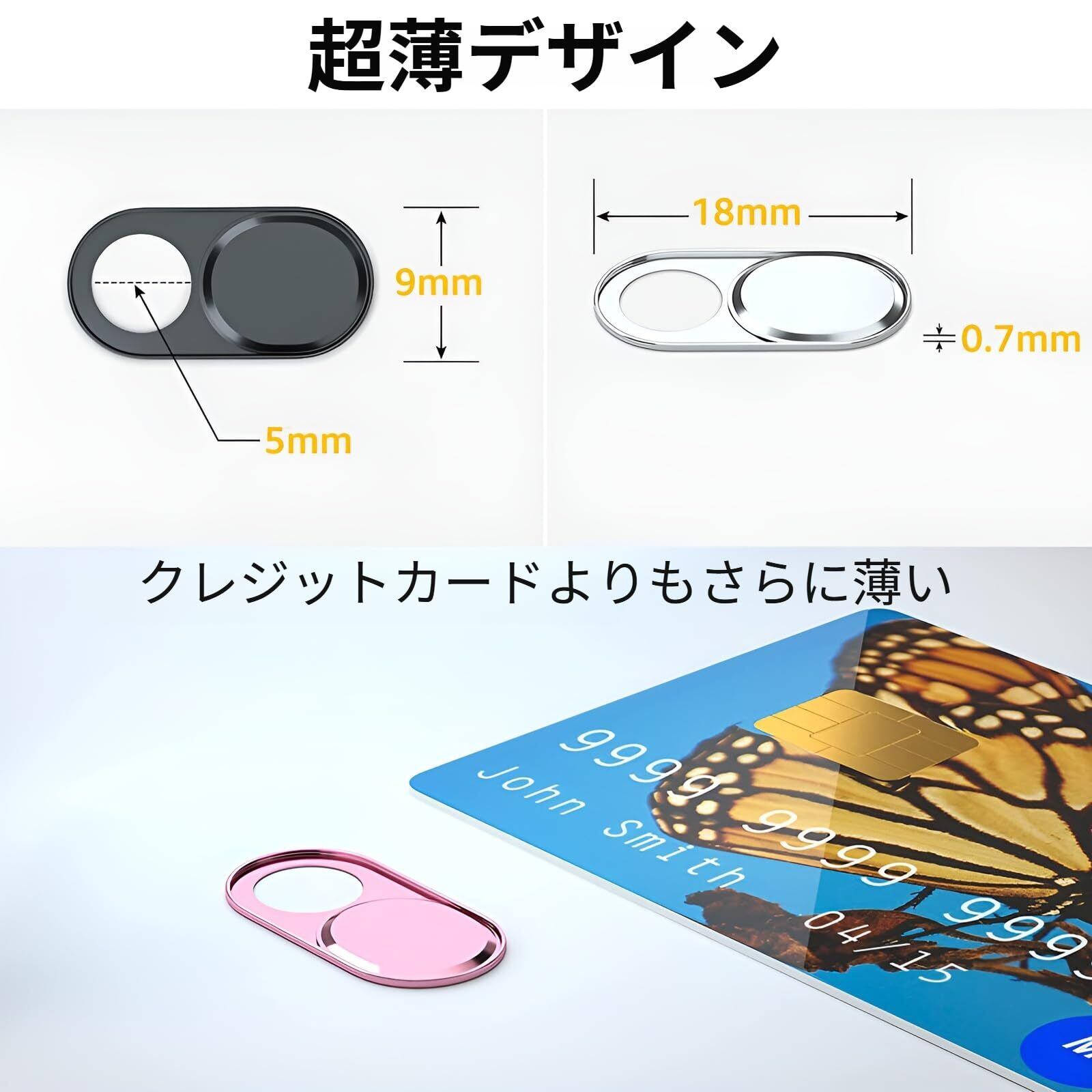 [超薄型设计] このウェブカメラカバーは、わずか0.7mmの超薄型設計で、デバイスの外観を損なうことなく、に取り付けられます。ノートパソコン、タブレット、フォンなど、さまざまなデバイスに対応し、使用時に違和感を感じさせません。