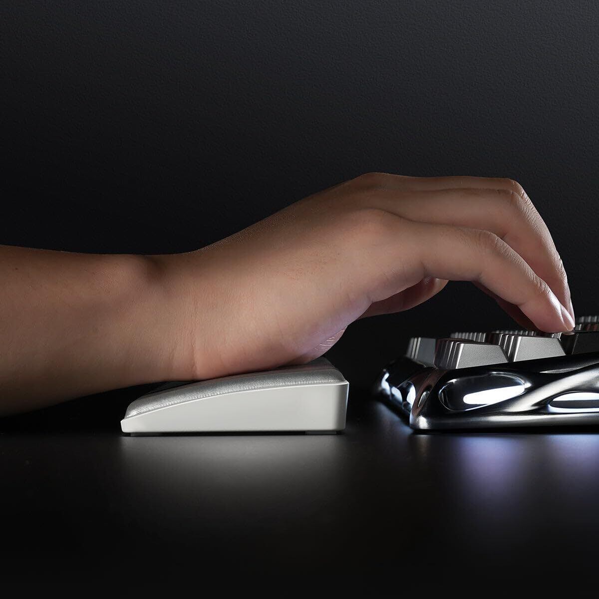 【優しくフィットする手首クッション】少しの荷重でもピタッと支えてくれる低反発ポリウレタン内蔵。圧力を分散するので、長時間使っても疲れにくくなっている。