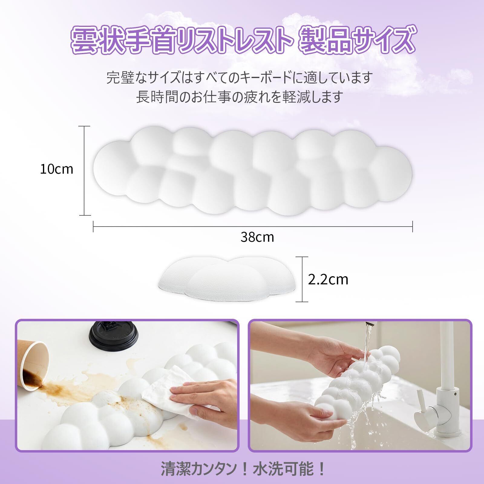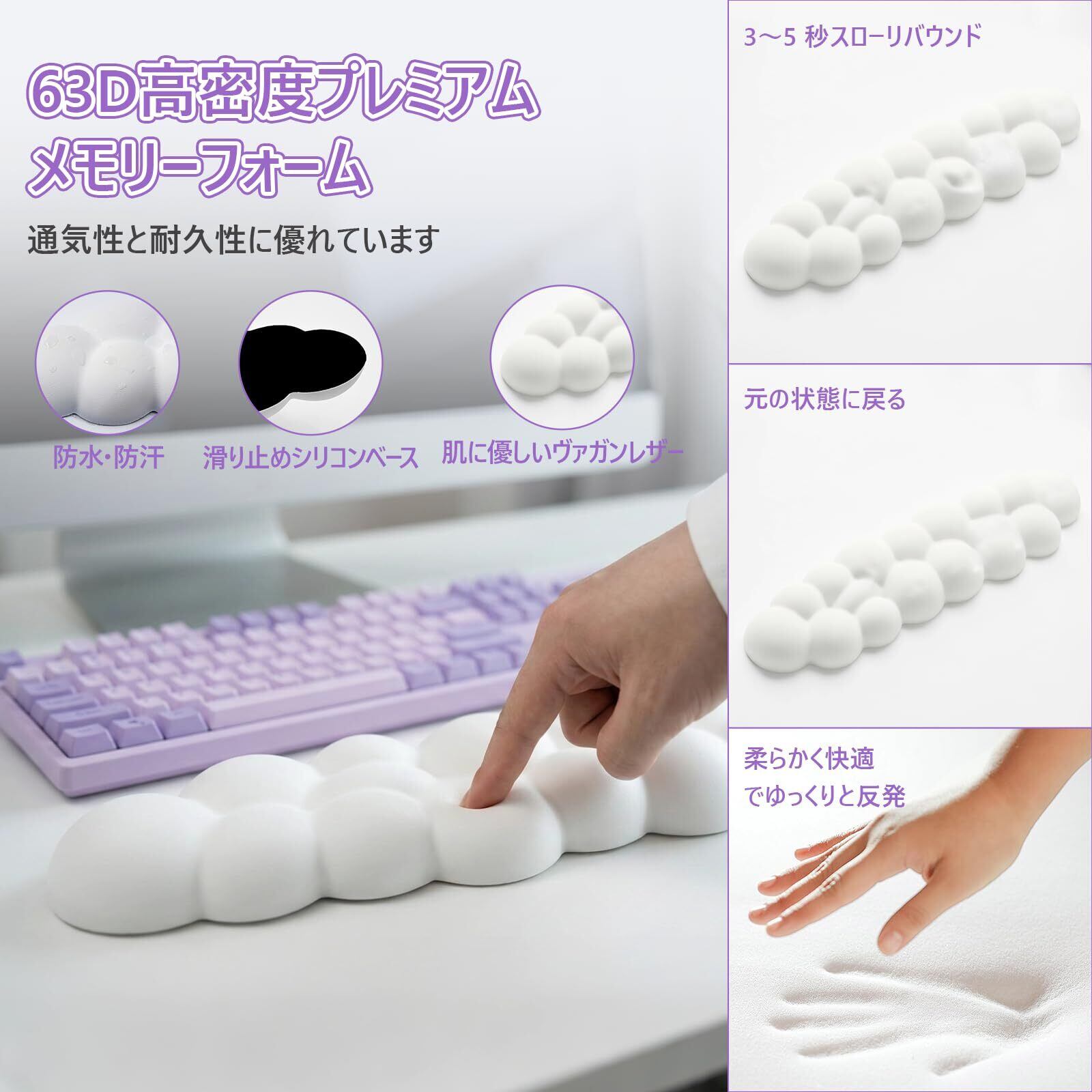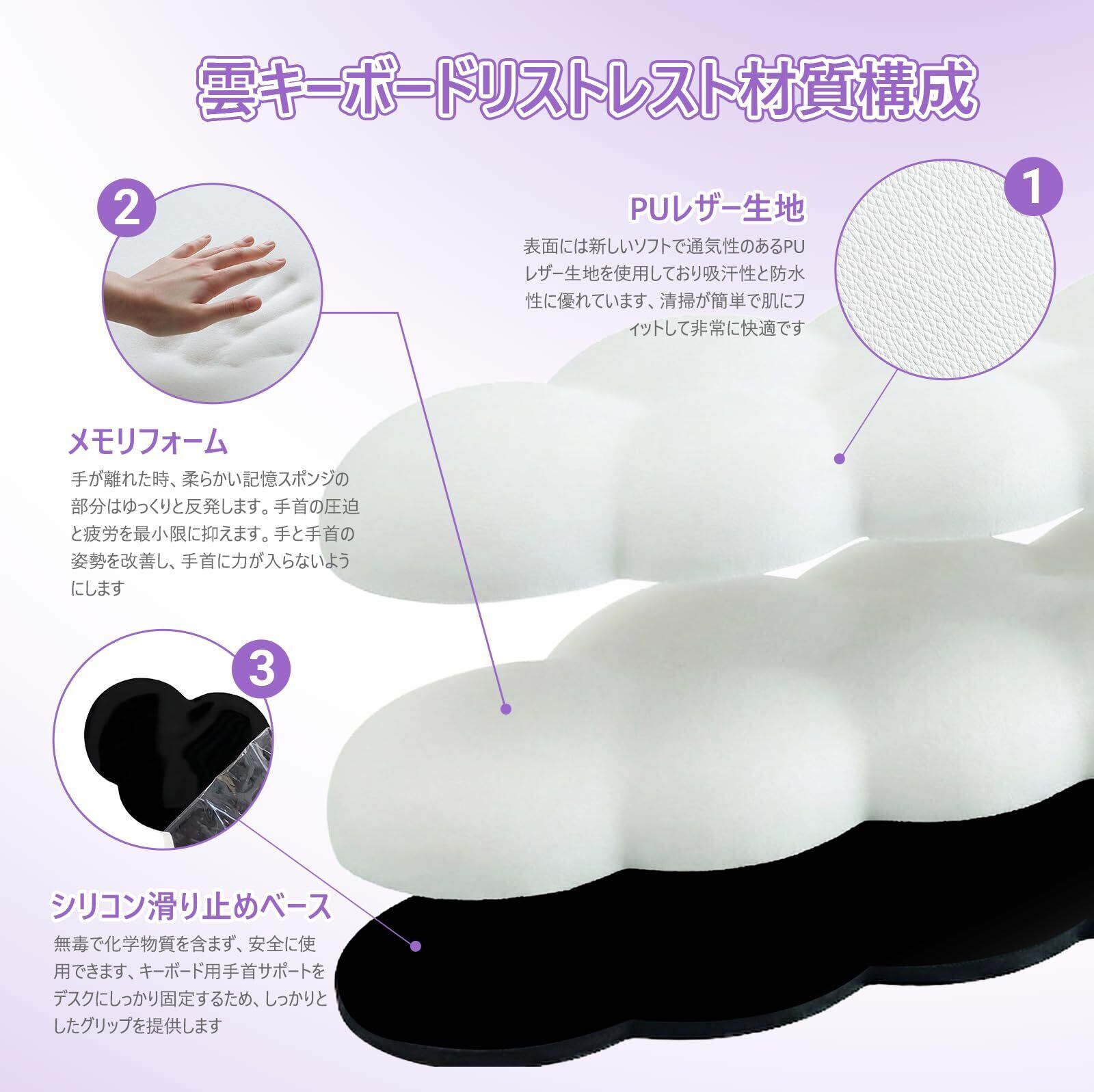 キーボードリストレスト 雲 PUレザー クラウド 疲労軽減 手首クッション メモリフォーム パームレストkeyboard wrist rest 人間工学デザイン 手首パッド 低反発クッション かわいいリストレストpcキーボード 通気性あり 肌に刺激なしリストパッド アームレスト 滑り止めベース PCゲーム&オフィスワークに最適 手首痛み緩和 ストレス解放 38.5*9.5cm白