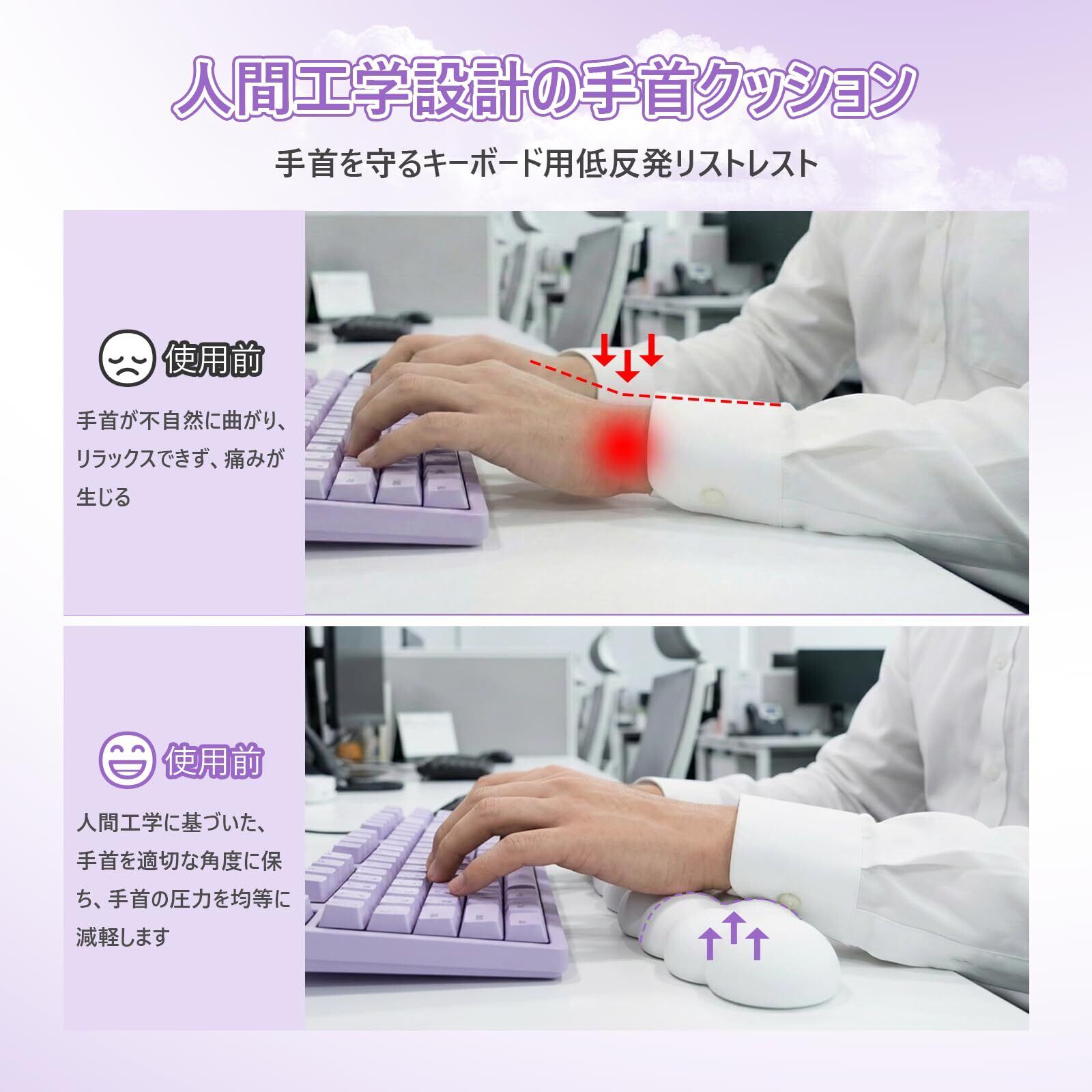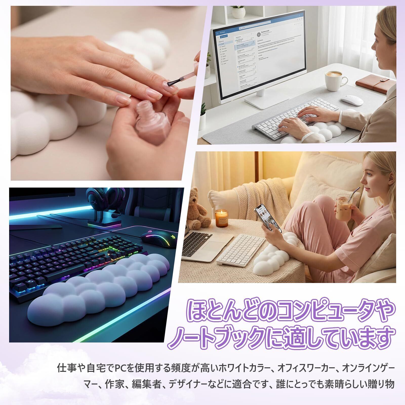 【適合性】:雲キーボードリストレストはほとんどのコンピュータやノートブックに適しています。仕事や自宅でPCを使用する頻度が高いホワイトカラー、オフィスワーカー、オンラインゲーマー、作家、編集者、デザイナーなどに適合です。母の日ギフト、バレンタインデーギフト、バーミツバーへの贈り物として適用です。手首からの摩擦と圧力を大幅に減らすことができます。このデザインは、長時間のコンピューター使用でこわばりや痛みを感じる人に最適です。