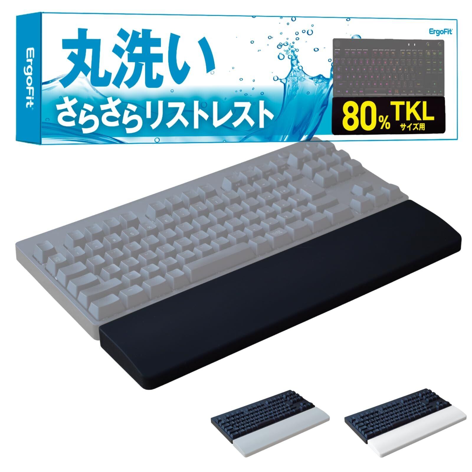リストレスト パームレスト 丸洗い TKL 80% 36cm テンキーレス 滑り止め機能付き ゲーミング 疲労軽減 疲労低減 キーボード用 シリコン製 人間工学 エルゴノミクス (ブラック)