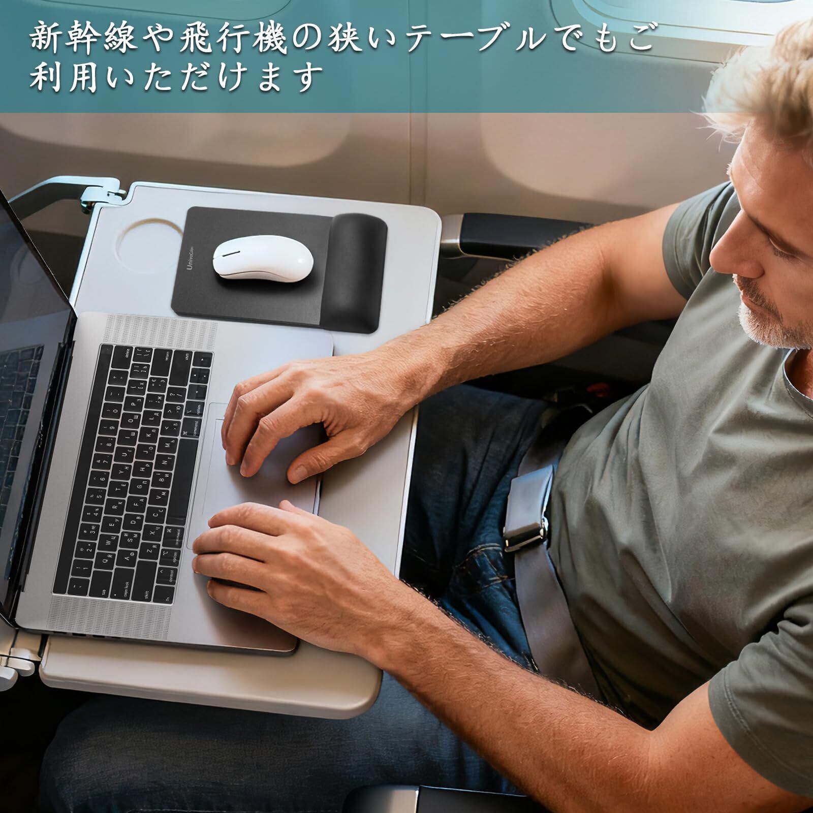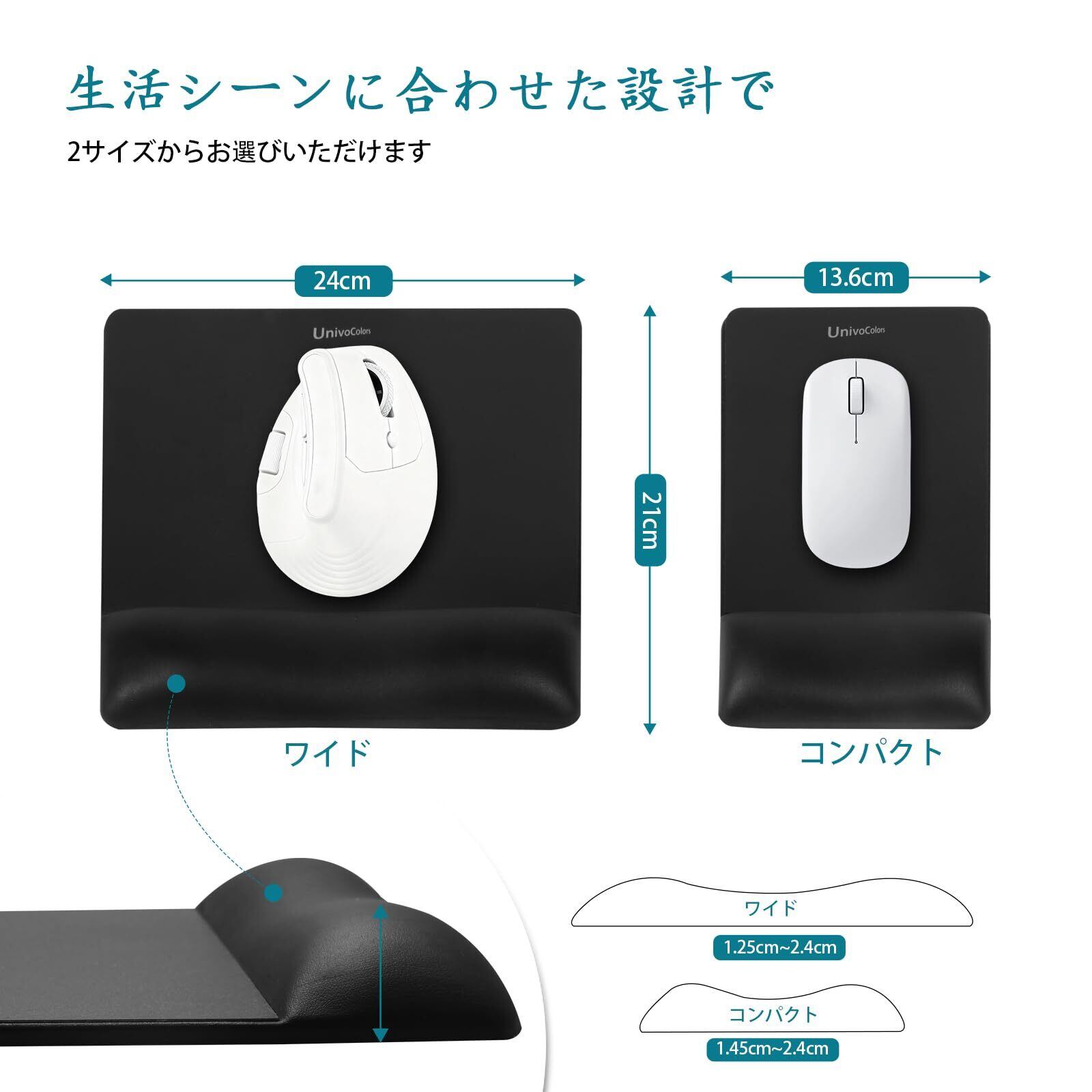 UnivoColors ミニサイズ マウスパッドリストレスト一体型 手首置き プレミアムPU素材 低反発クッション 人間工学デザイン 出張や旅行先でも携帯に便利 硬質プレートでマウス操作滑らか 長時間操作のサポート 疲労低減 底面に滑り止め,ホワイト