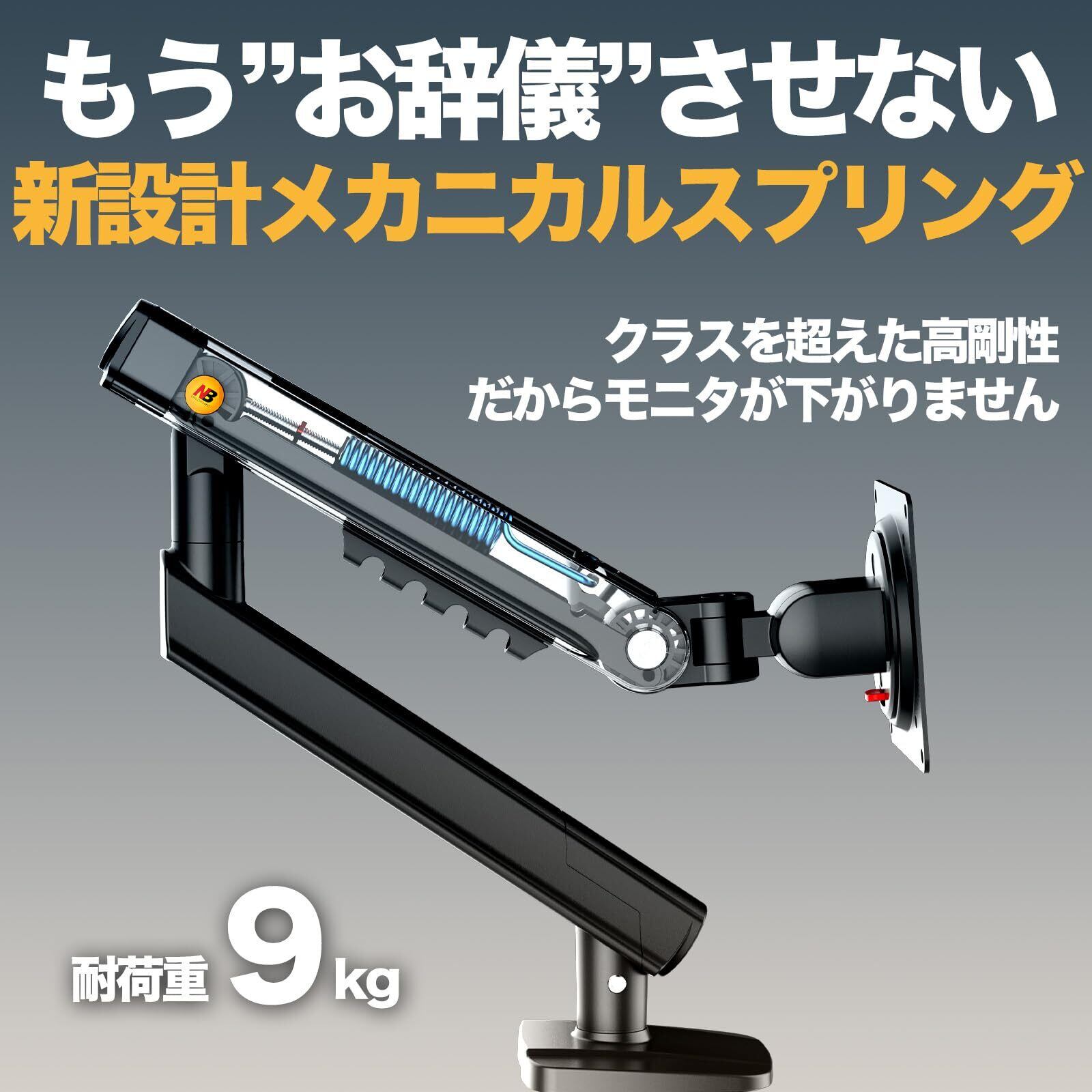 【新着商品】モニターアーム 17〜32インチ対応 片手で軽く動く ノートPCと2画面に最適 姿勢に合わせて高さ調整 9kgまで NB ERGONOMIC A5 ブラック