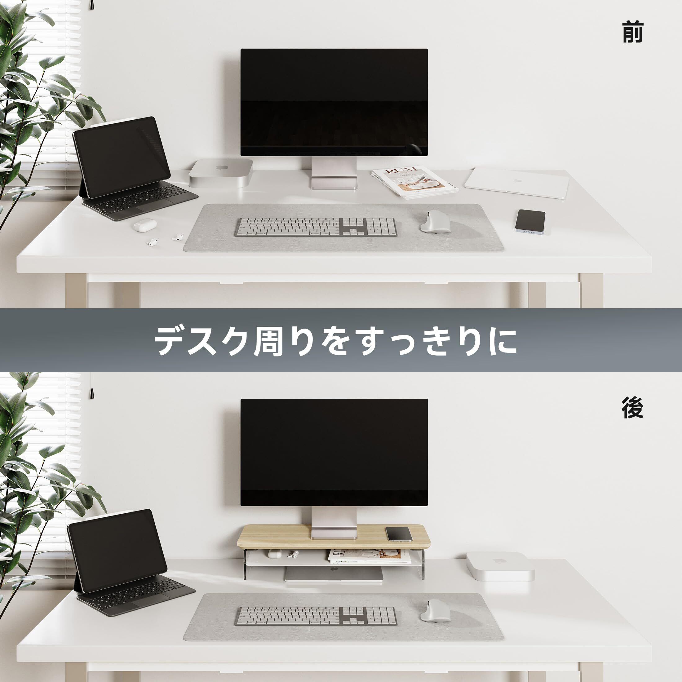 【安心な材質 ・安定性UP】モニタースタンドは厚い金属板で作られており、8ミリ厚のアクリル脚は美しいだけでなく、しっかりと天板を支えることができます。そのため、机上台の最大の耐荷重はなんと45kgです。