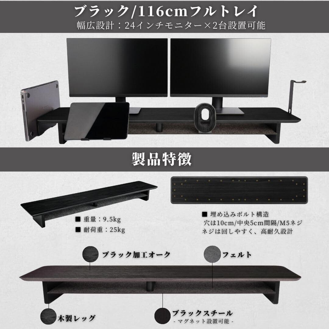 デスクシェルフ モニター台 卓上(116cm Walnut ウォールナット フルトレイ (ブラック加工オーク, 116cmフルトレイ)