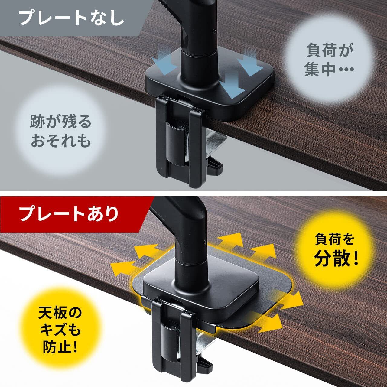 【人気商品】サンワダイレクト モニターアーム 補強プレート クランプ グロメット 対応 スチール製 傷防止 デスク保護 黒 100-LA065