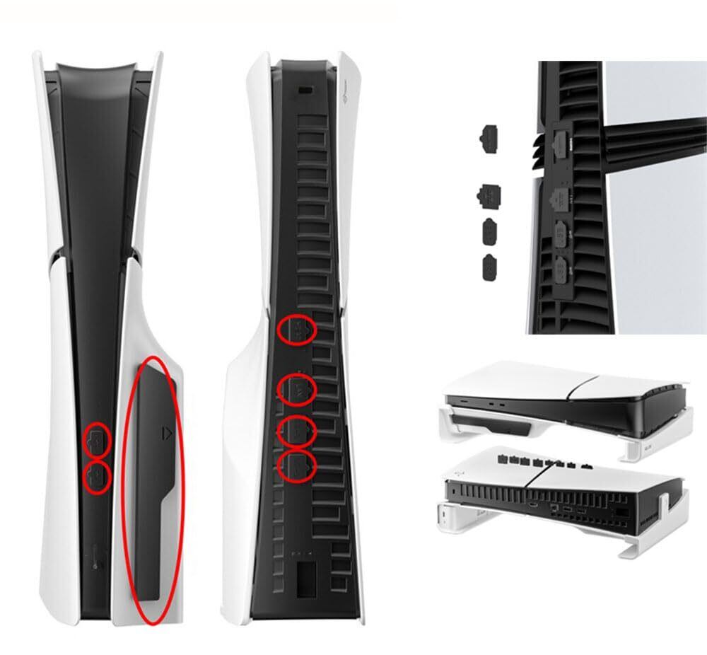 Natiform 収納保護カバー ホコリ侵入防止カバー 新型スリムゲーム機本体対応 (PS 5 Slim横型ブラックホワイトエッジ+ダストプラグ)