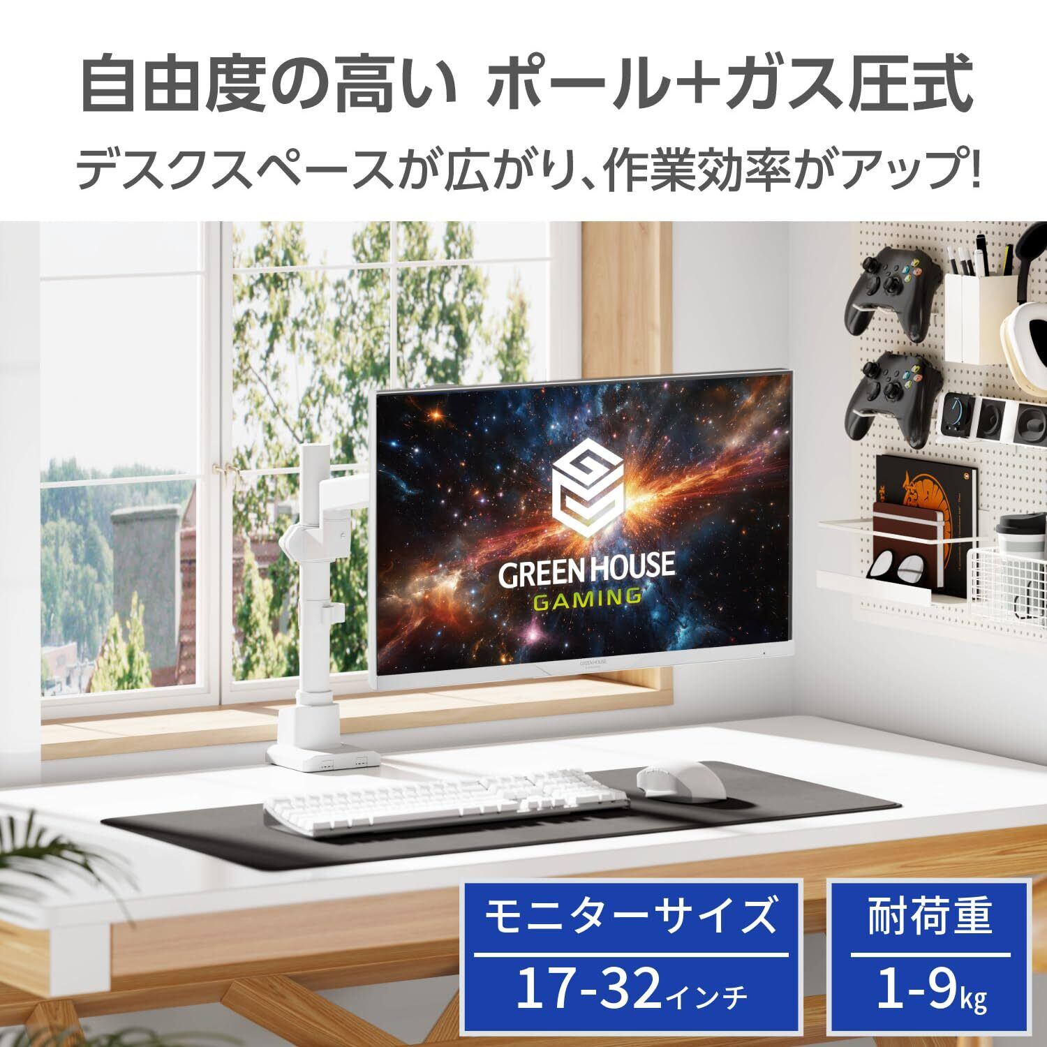 グリーンハウス モニターアーム ガス圧式 17-32インチ対応 耐荷重1-9kg 3年 4軸 ホワイト GH-AMDP1-WH