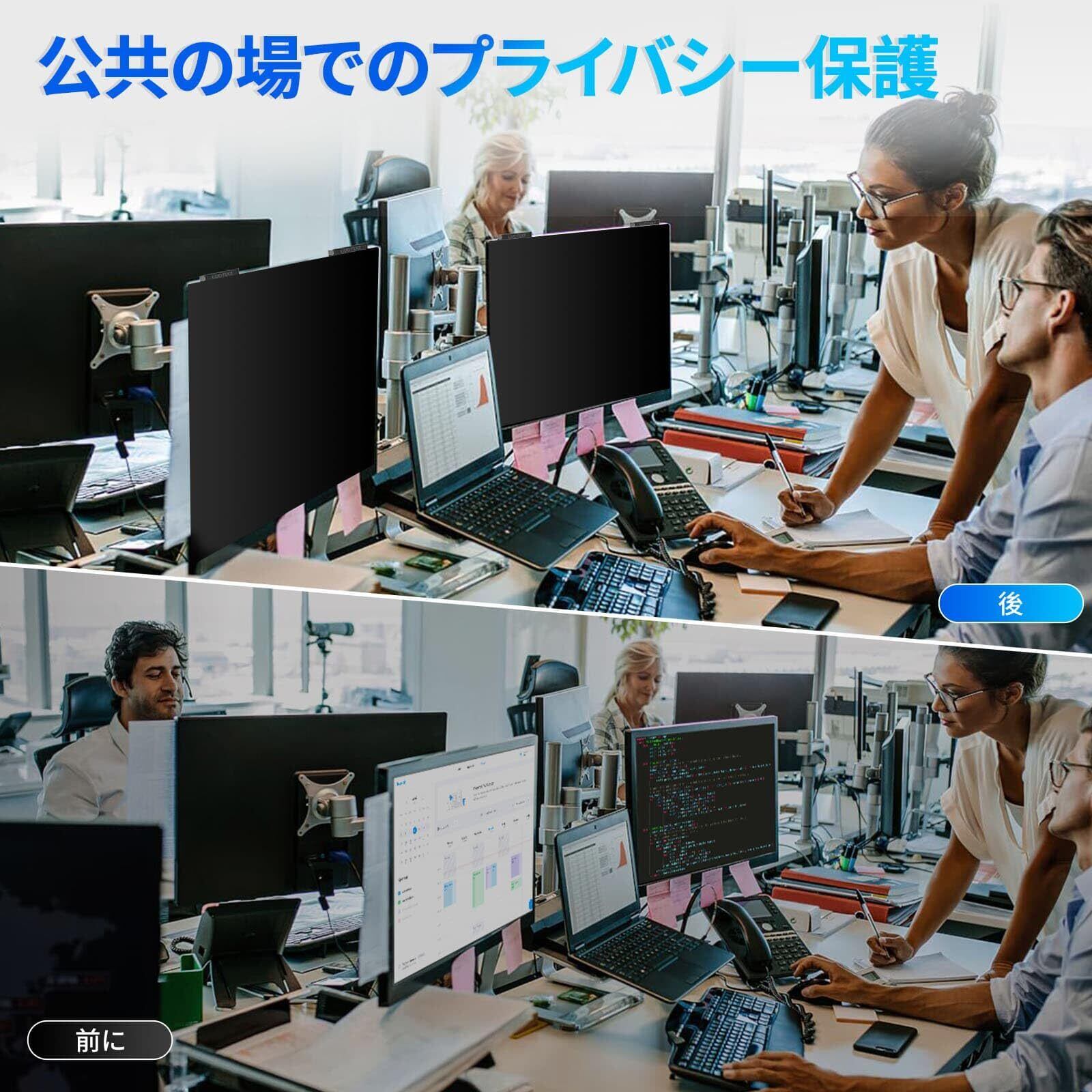 完璧なプライバシー保護: コンピューターモニターのプライバシースクリーンは、業界をリードする製造プロセスと最先端のプライバシー保護技術を組み合わせ、多層光学コーティングにより、ユーザーのみに見える26度のプライバシー保護角度を正確に実装します。高度なコンピュータープライバシースクリーンフィルターは、オフィス環境で重要な情報を機密に保ち、個人情報のセキュリティを確保します。