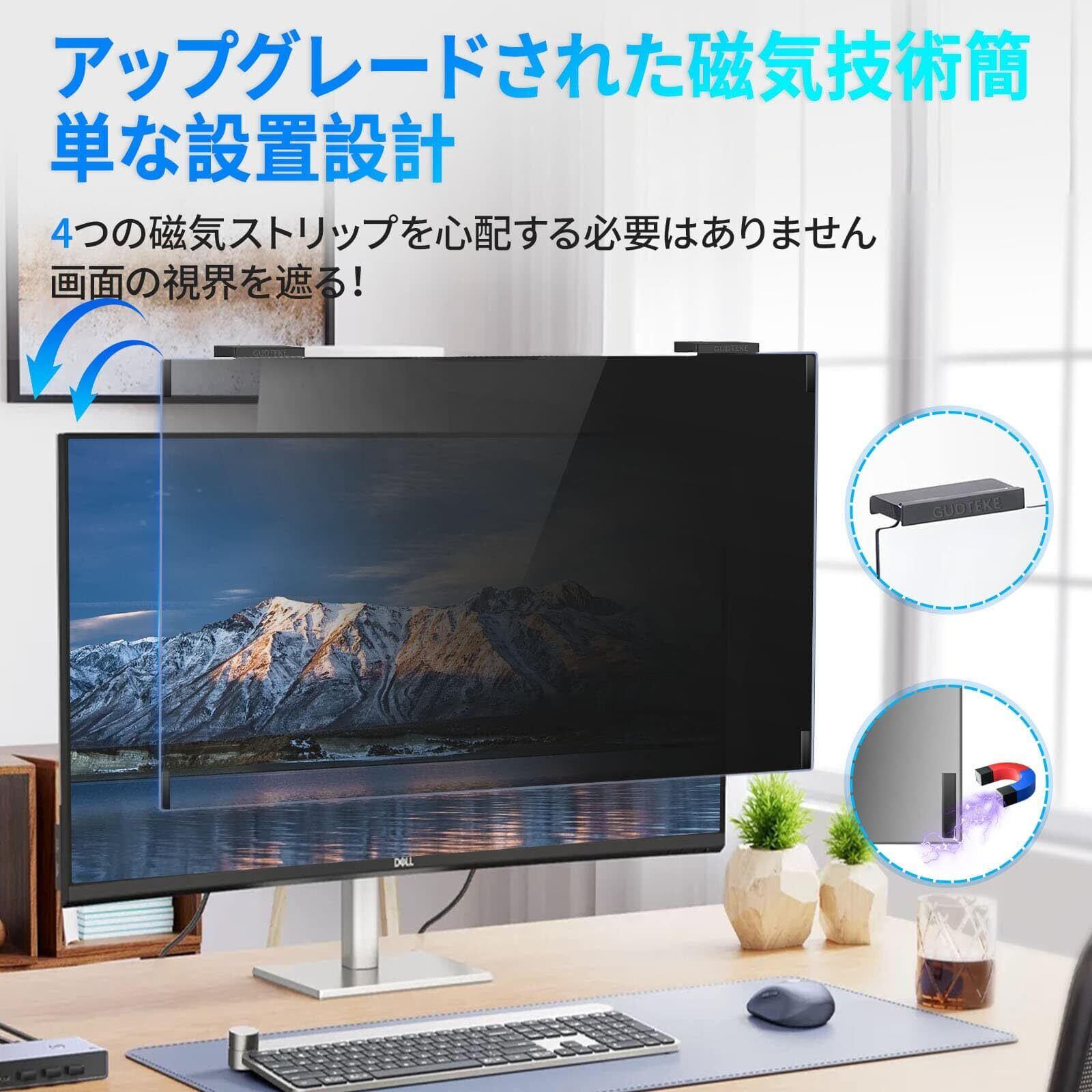 GUDTEKE磁気吸引力PCモニター用 覗き見防止 保護フィルム 吊り下げ式プライバシースクリーン保護フィルムと互換 ワイドスクリーン対応コンピュータのモニター、ワイド高比16:9、ブルーライトカット液晶保護フィルム (24インチ)