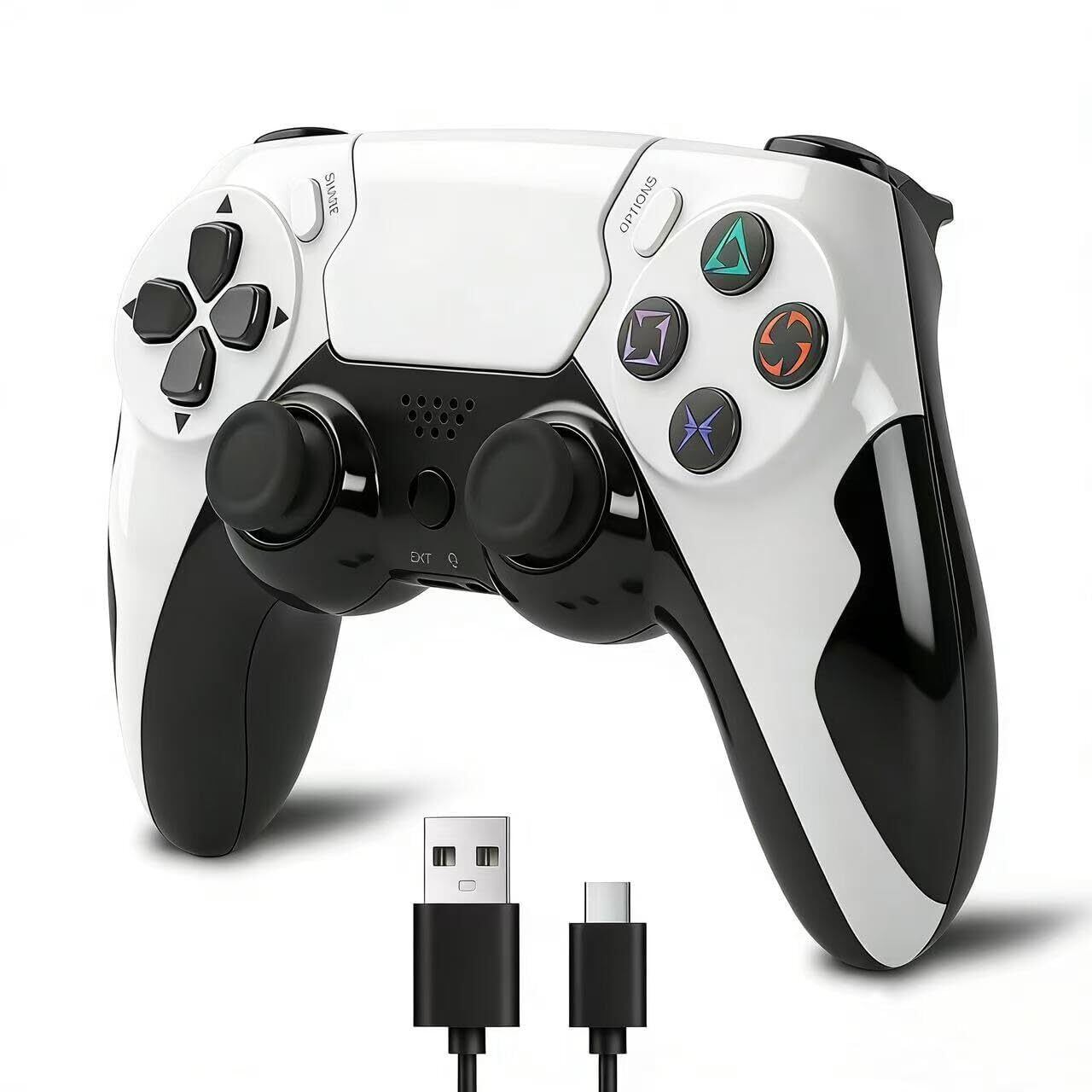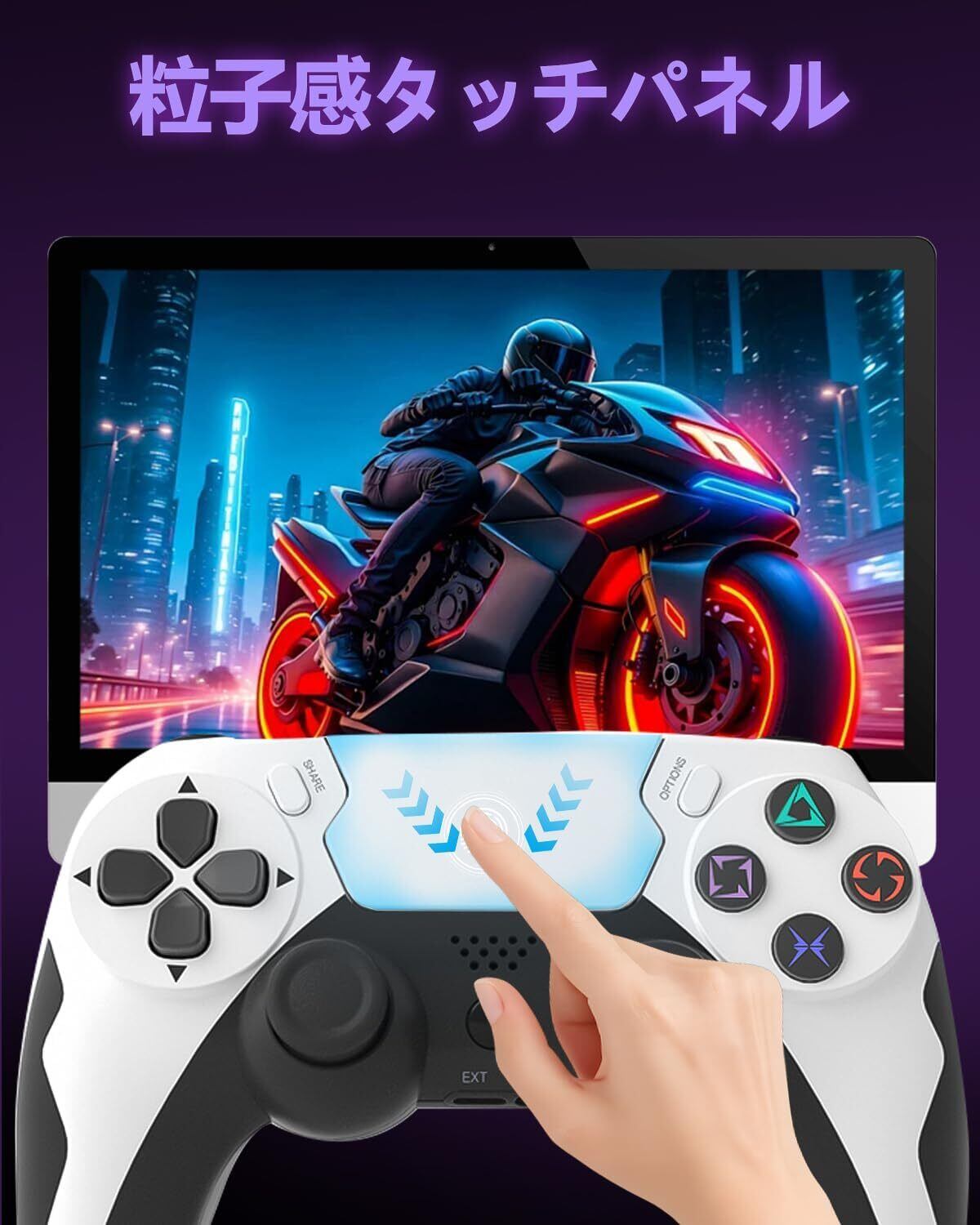 P4 コントローラー PC ゲームパッド eスポーツ専用 ワイヤレス ゲームコントローラー 1000Hz ポーリングレート 無線/有線接続 超低遅延 デュアル振動 6軸ジャイロ タッチパッド搭載P4/P3/PC/Android対応 内蔵スピーカー 3.5mmイヤホンジャック 日本語説明書付き (ホワイト)