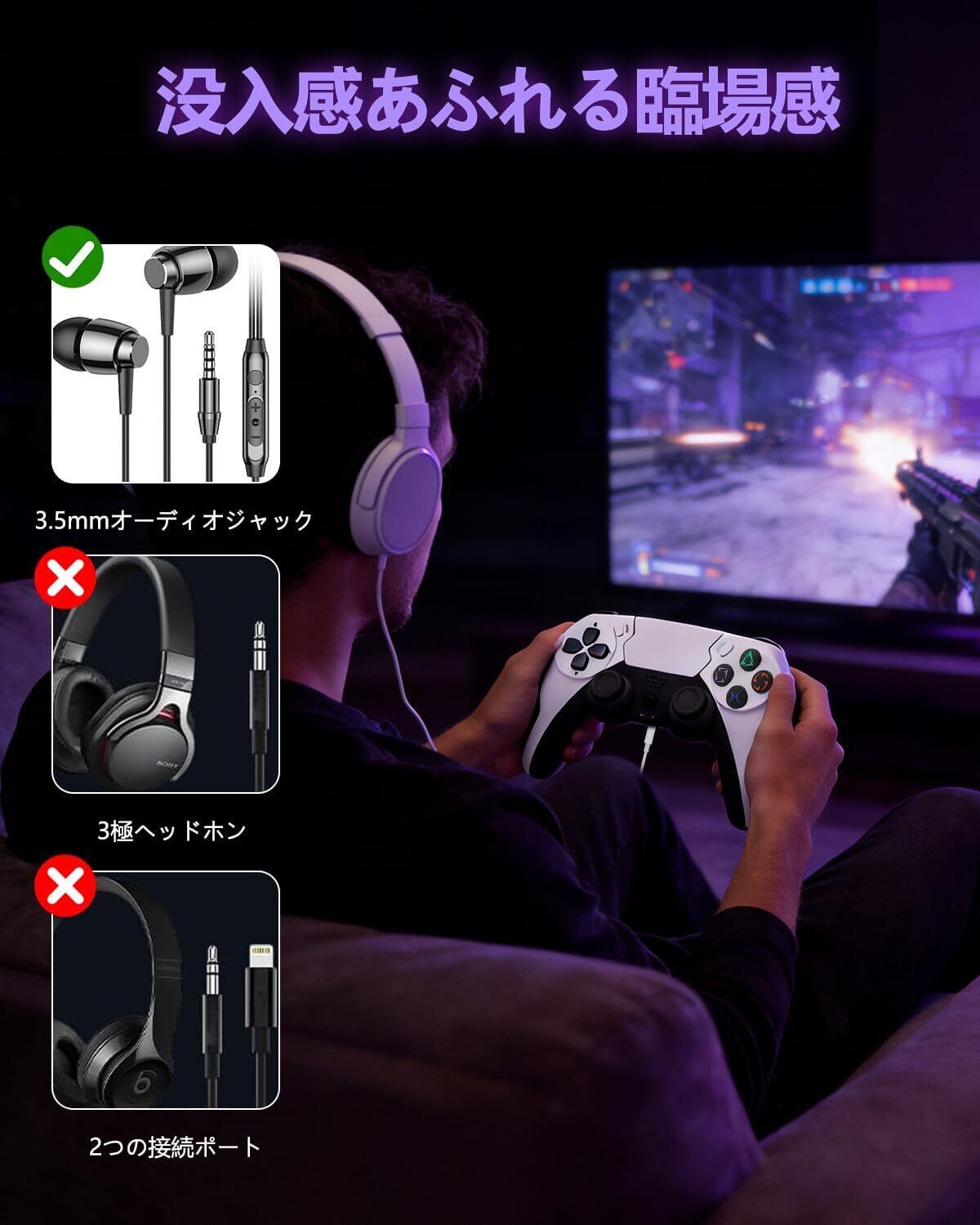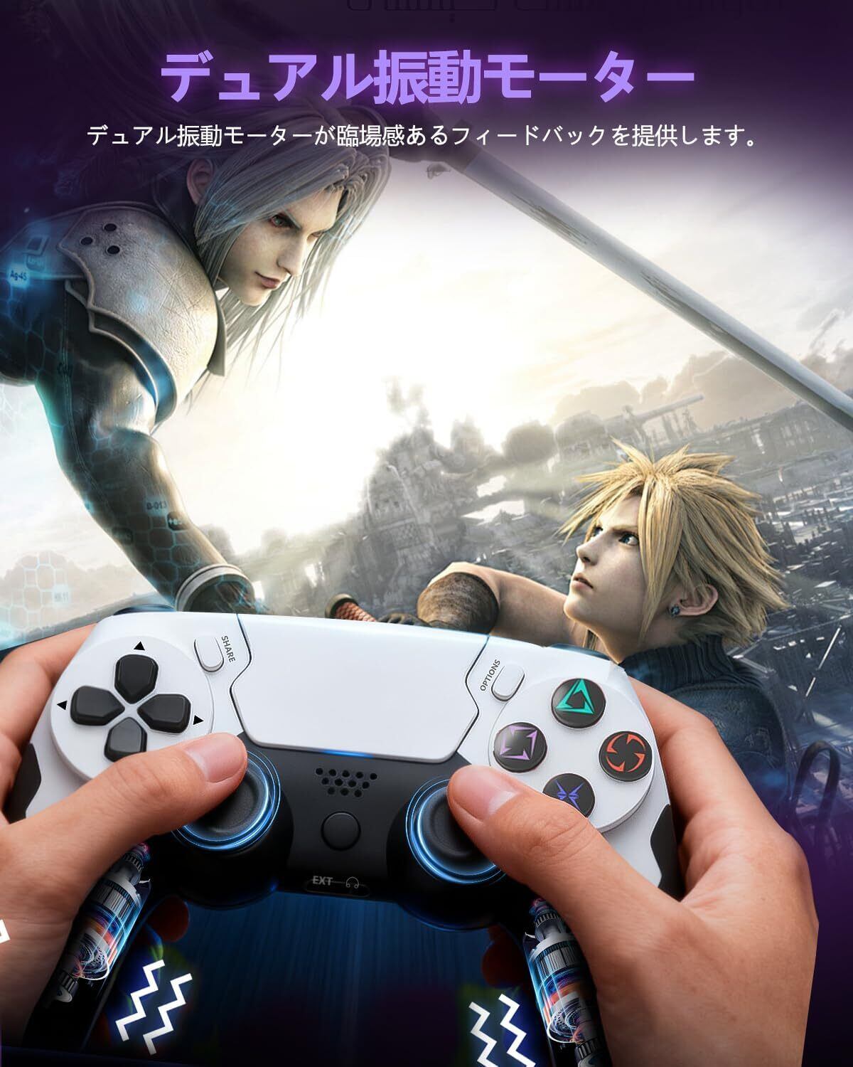 【マルチ機能搭載|リアルなゲーム体験】 このコントローラーは、ゲームの臨場感を最大限に引き出す機能を集約!️ 双振動モーターで繊細な衝撃や動作を伝え、内蔵スピーカーと 3.5mm オーディオジャック(ヘッドセット対応)で音響体験を向上。6 軸ジャイロセンサーによる直感的モーション操作、専用シェアボタンでの瞬間記録機能も搭載!ワイヤレスコントローラーとしての自由さに加え、pc コントローラーやp4 コントローラーとして使用時も、あらゆるシーンで「リアルな感覚」「快適な操作」「簡単な共有」を同時に実現します。