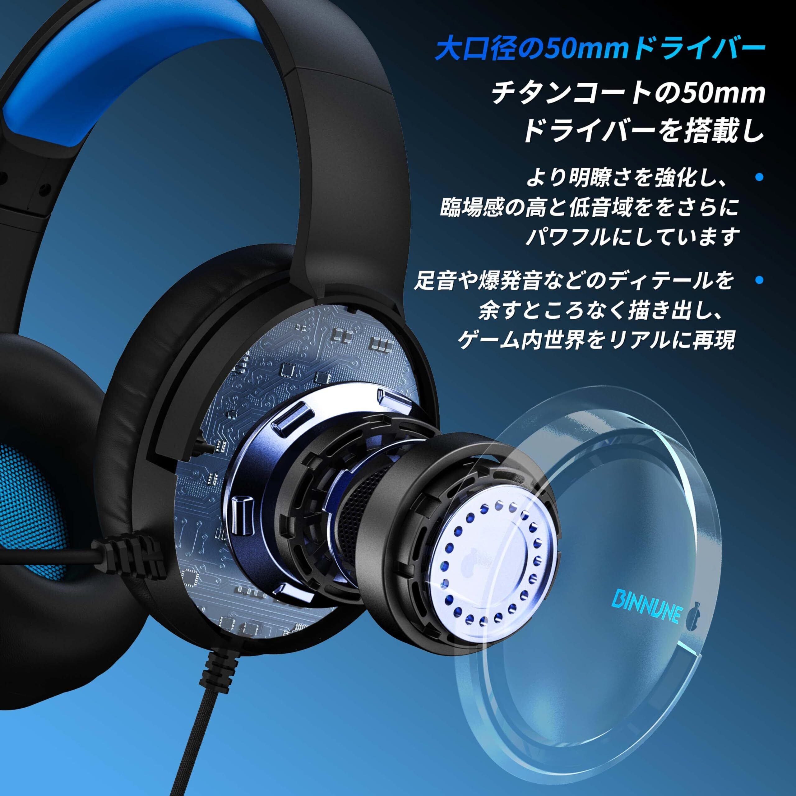 BINNUNE ゲーミングヘッドセット PS5 ヘッドセット 3.5mm有線 xboxヘッドセット マイク付き ミュート機能付き ゲーミングヘッドホン 50MMドライバー低遅延 軽量 ノイズキャンセリング マイク FPS ゲーム用 ヘッドフォン PC PS5 PS4 switch xbox対応