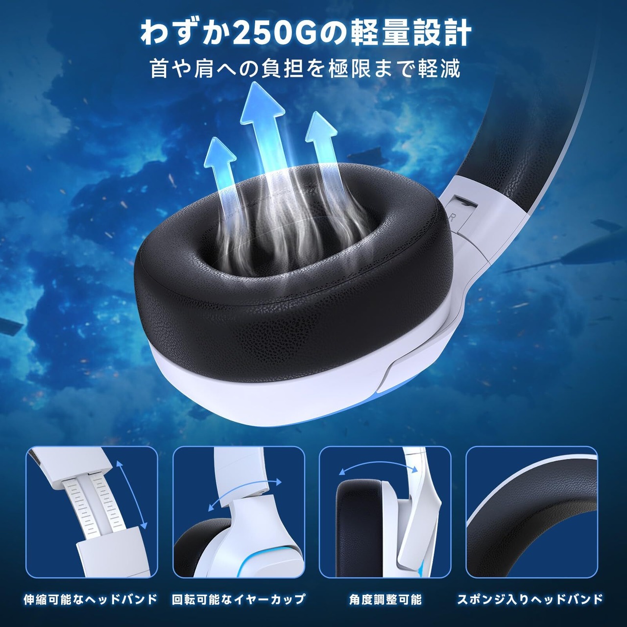 【軽量で折りたたみ可能なデザイン】:このブルートゥース ヘッドホンは回転式イヤーカップと調節可能なヘッドバンドを備え、究極の快適さを実現したこの折りたたみ式ワイヤレス ゲーミング ヘッドセットは、収納が簡単で、外出中のゲーマーに最適なギフトです。
