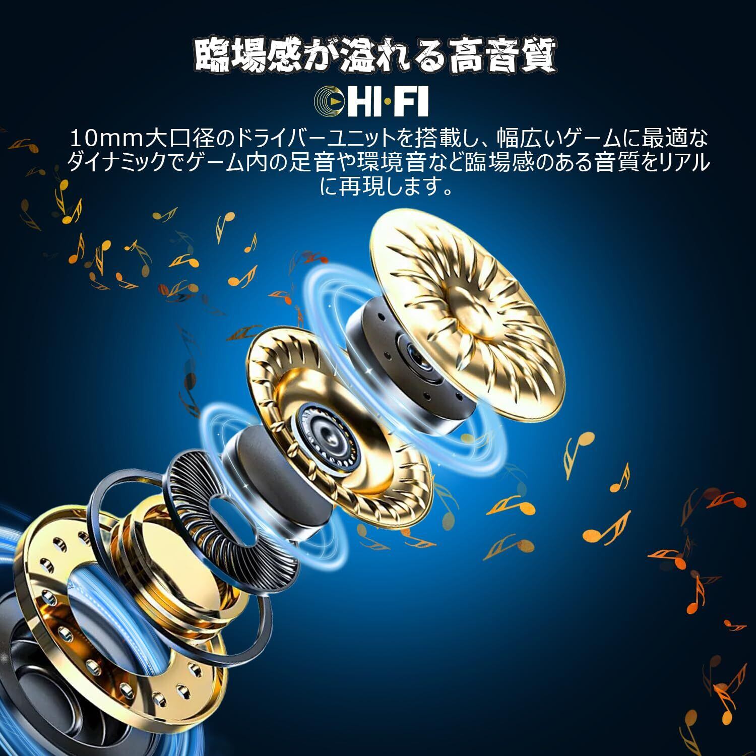 【臨場感が溢れる高音質なゲーミングイヤホン】10mm大口径のドライバーユニットを搭載し、幅広いゲームに最適なダイナミックでゲーム内の足音や環境音など臨場感のある音質をリアルに再現し、音だけでゲーム内の周囲の状況をよく把握できます。ゲーミングイヤホンにはノイズキャンセリング技術を搭載していて、ノイズを効果的に低減することができ、チャット音声とゲーム音声を同時に聞かれて、ボイスチャットを楽しむ事ができます。
