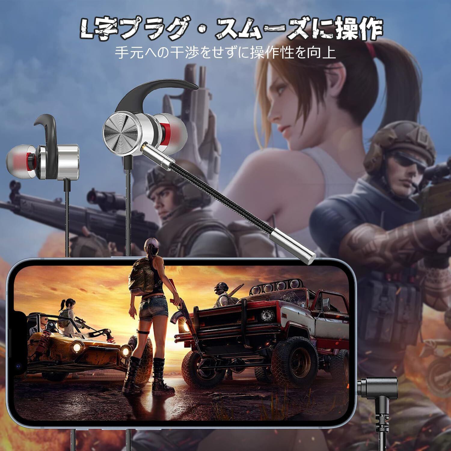 【快適な装着感・L型プラグ】ゲーム イヤホンマイクは人体工学に基づく精密なデザインにより、耳へのフィット感が向上し、長時間装着しても耳への負担を軽減します。さらに、髪型の乱れを気にせず装着可能であり、S/M/Lの3種類サイズのイヤーピースが3種類あり、ご自身の耳のサイズにフィットするサイズを選択可能。装着時、従来のヘッドセットより蒸れたりせず感染症のリスクを軽減します。また、L字プラグを採用しており、手元への干渉を防ぎ、接続性と操作性を向上させています。