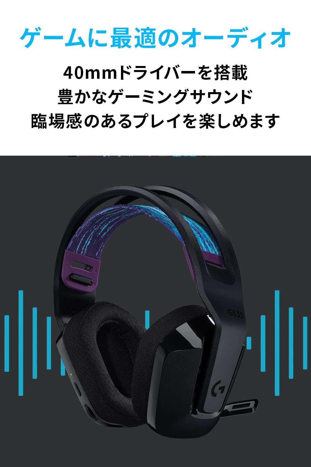 Logicool G ゲーミングヘッドセット G535 ワイヤレス ヘッドセット G535BK 超軽量 236g マイク付き 充電 33時間連続使用可能 Discord 対応 立体音響 2.1ch ステレオ USB PC PS5 PS4 ヘッドホン ヘッドフォン ブラック 国内正規品