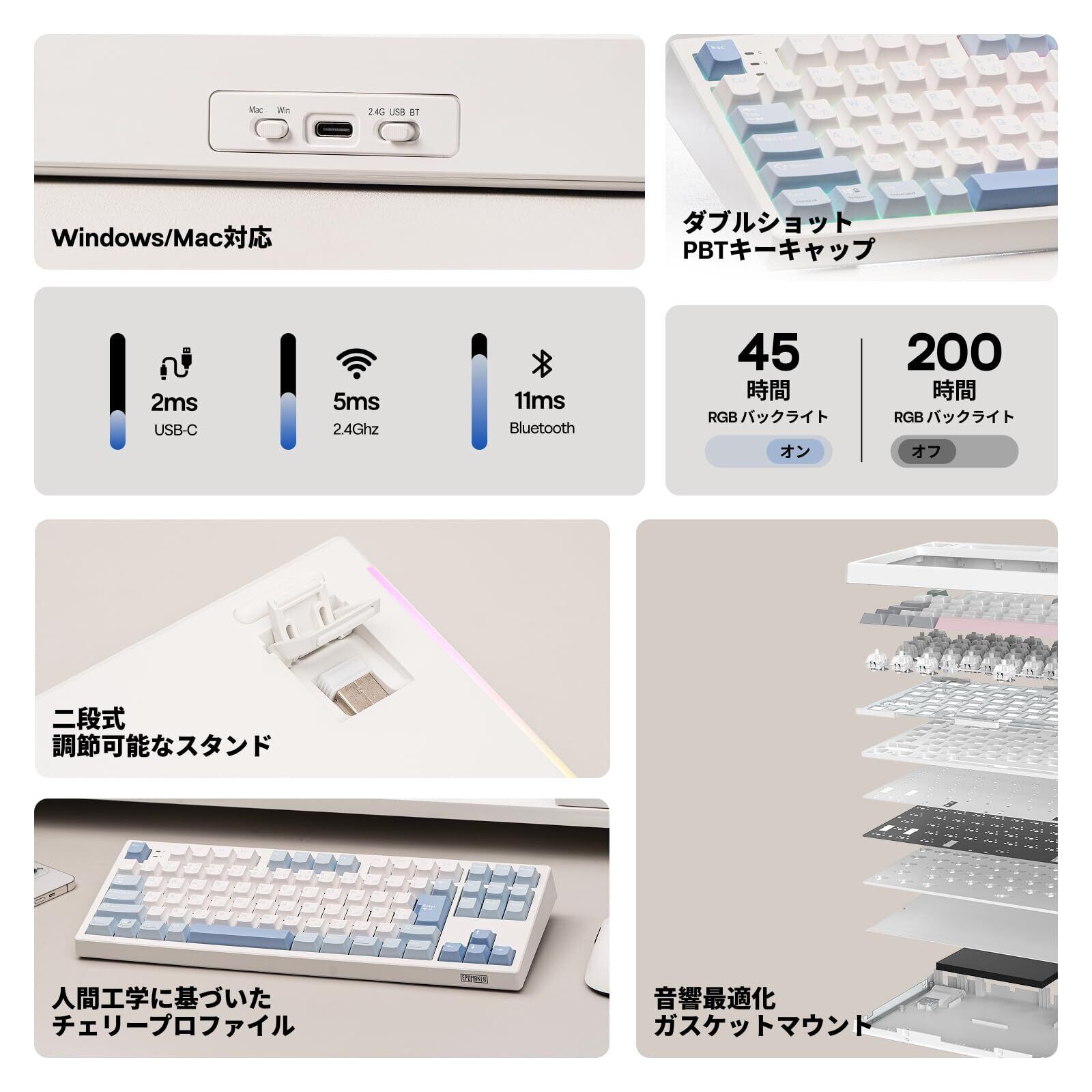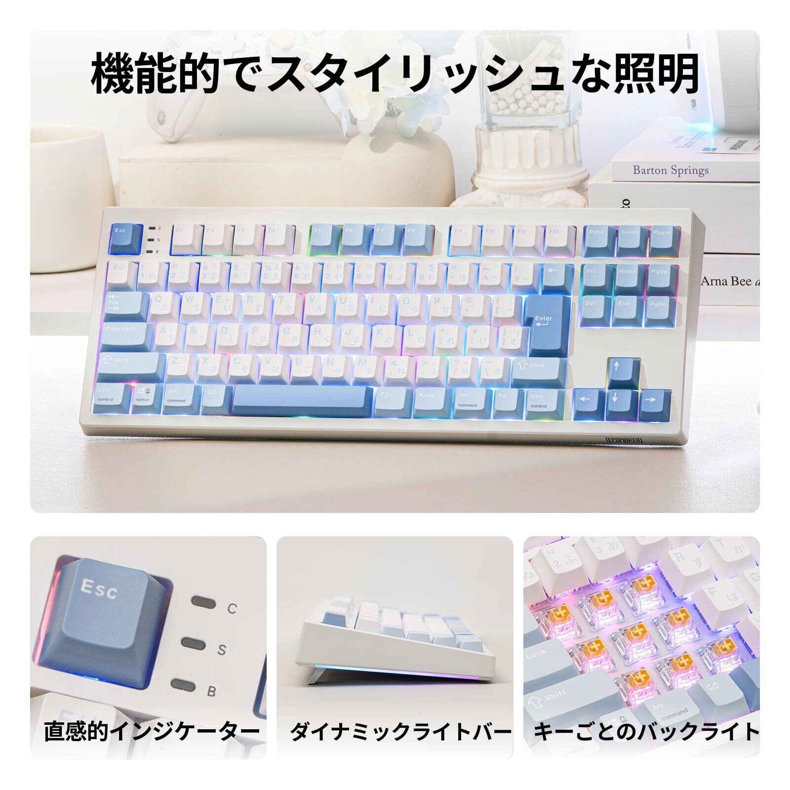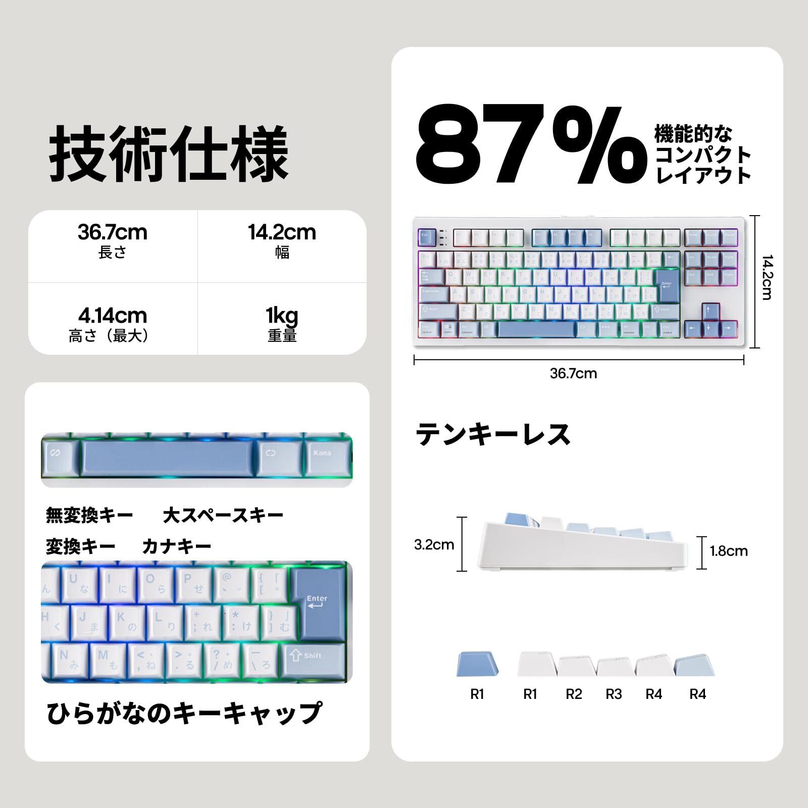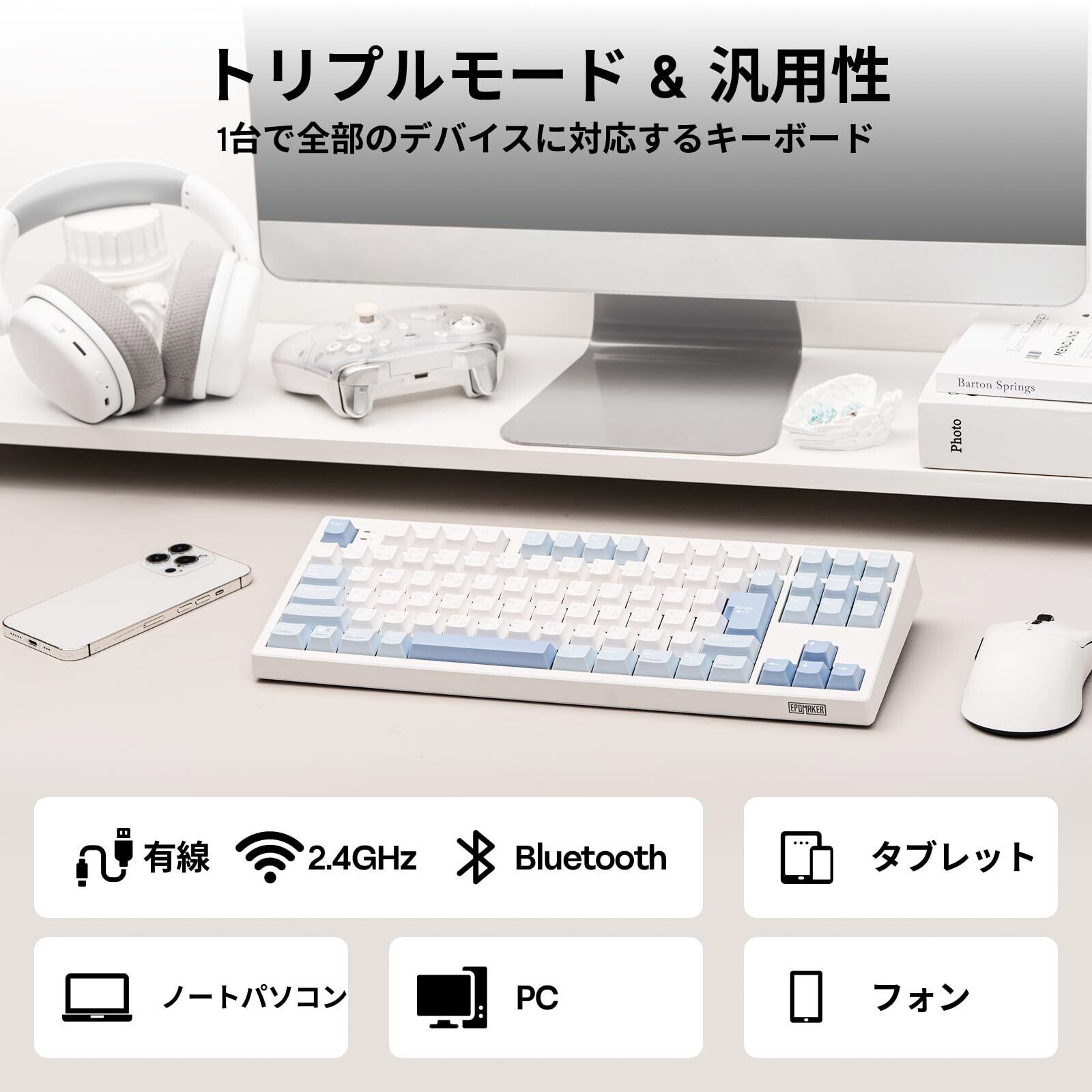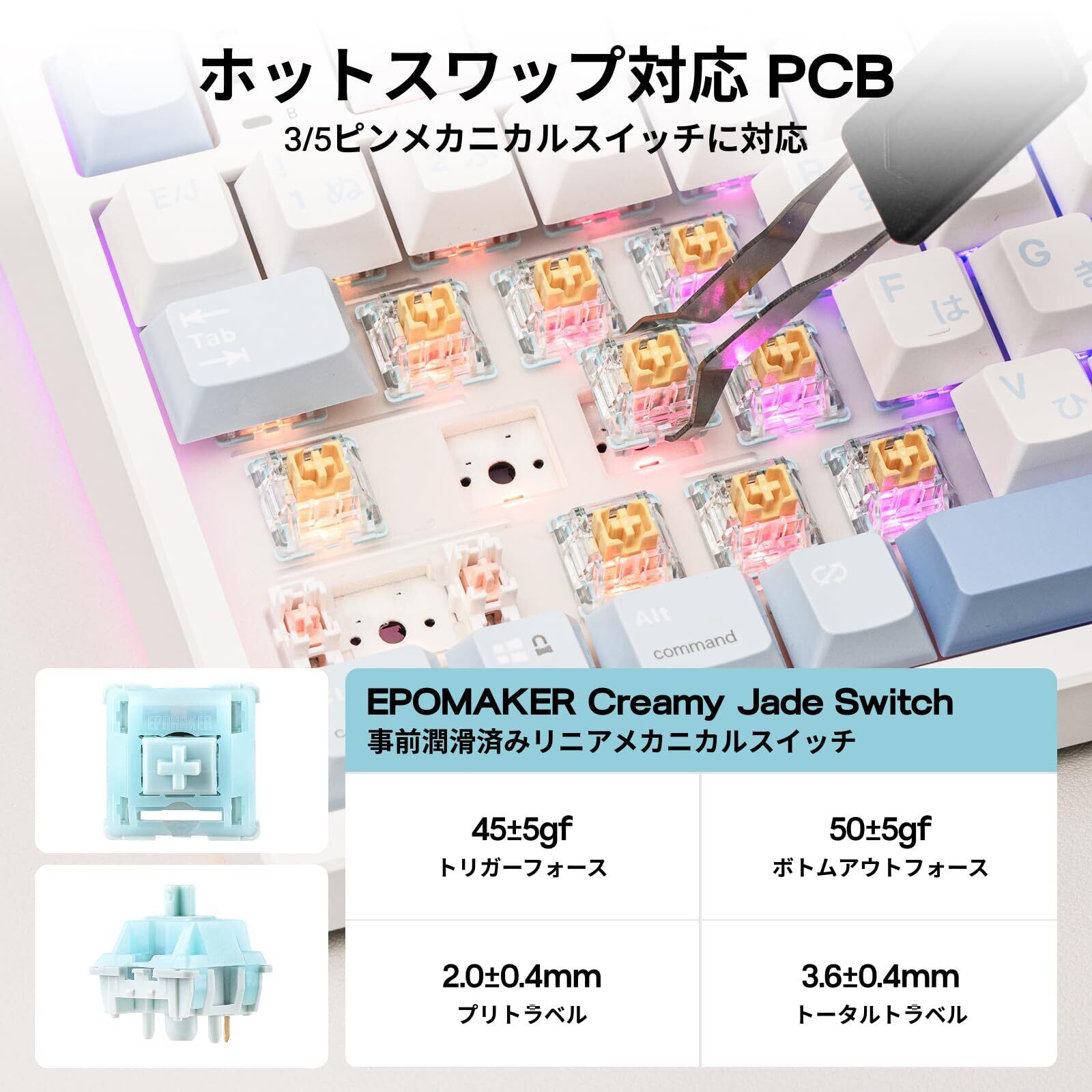 EPOMAKER TH87 JIS 日本語配列 TKL ワイヤレスゲーミングキーボード 2.4GHz/BT5.0/有線 テンキーレス ホットスワップ対応 10000mAh 無線 メカニカルキーボード 91キーリニアスイッチ RGBバックライト ガスケット構造 PBTキーキャップ Windows mac対応 (Blue&White, Creamy Jade)