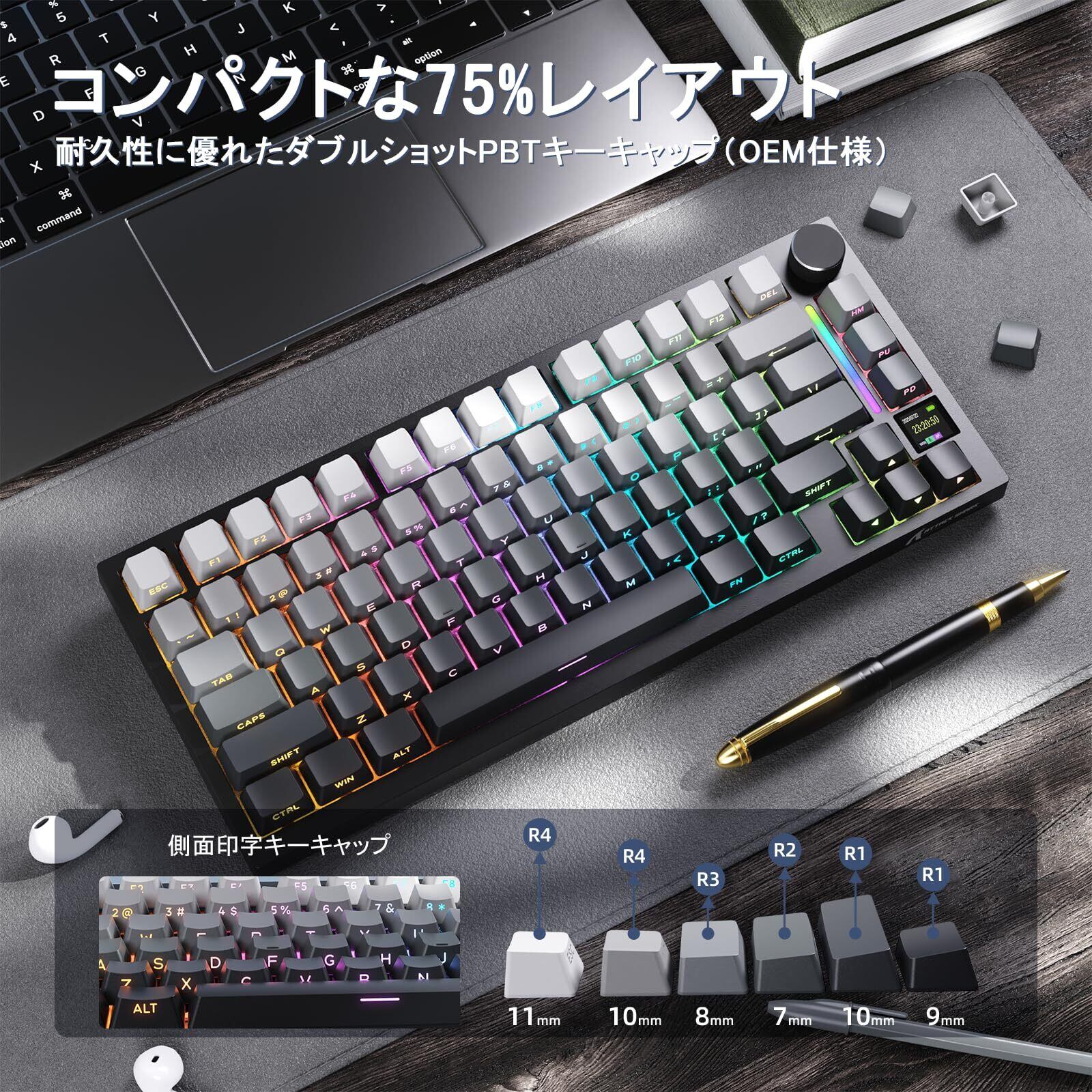 【在庫処分】ATTACK SHARK X820ULTRA メカニカルキーボード ゲーミングキーボード 無料発光Type-Cケーブル カスタム 75%配列 無線/有線/BT 三模接続 ホットスワップ 軸交換可能 PBTキーキャップ RGBバックライト LEDディスプレイ ノブ付き コンパクト 大容量バッテリー eスポーツ 高耐久 高コスパ MAMBASNAKEコラボレーション-ムーンライトナイト ギフト軸