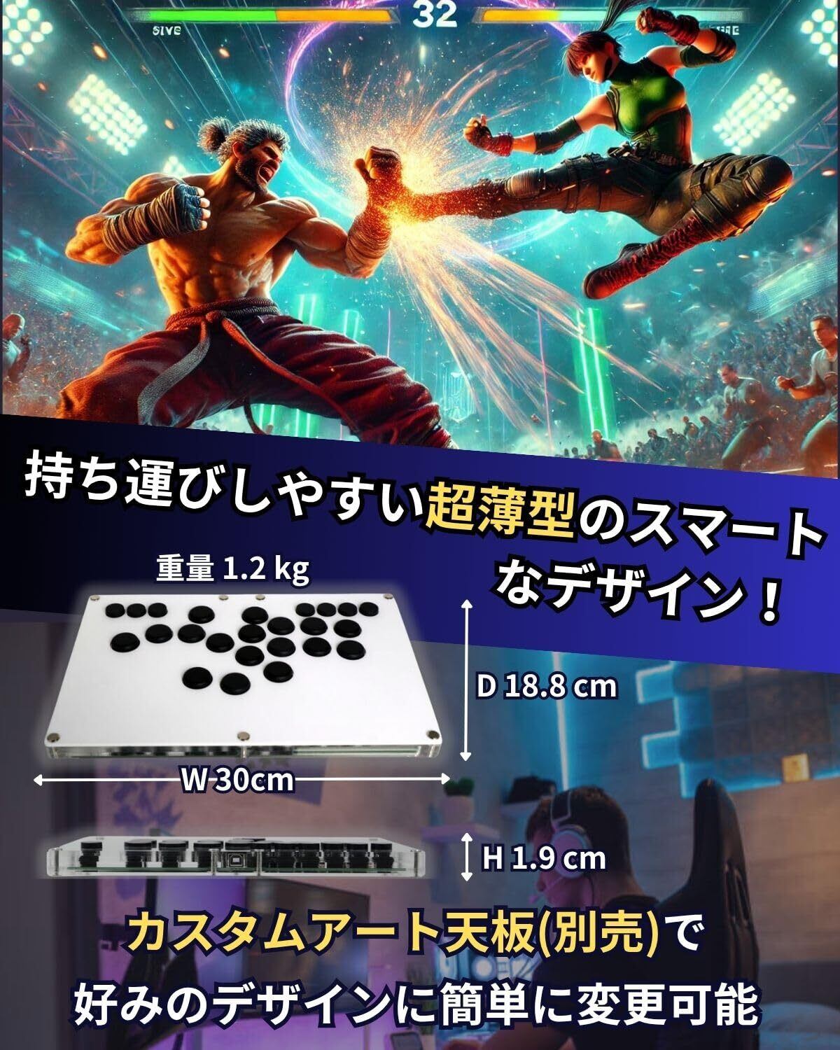 伝統的なアーケードジョイスティックサイズ、持ち運びしやすい超薄型デザイン。