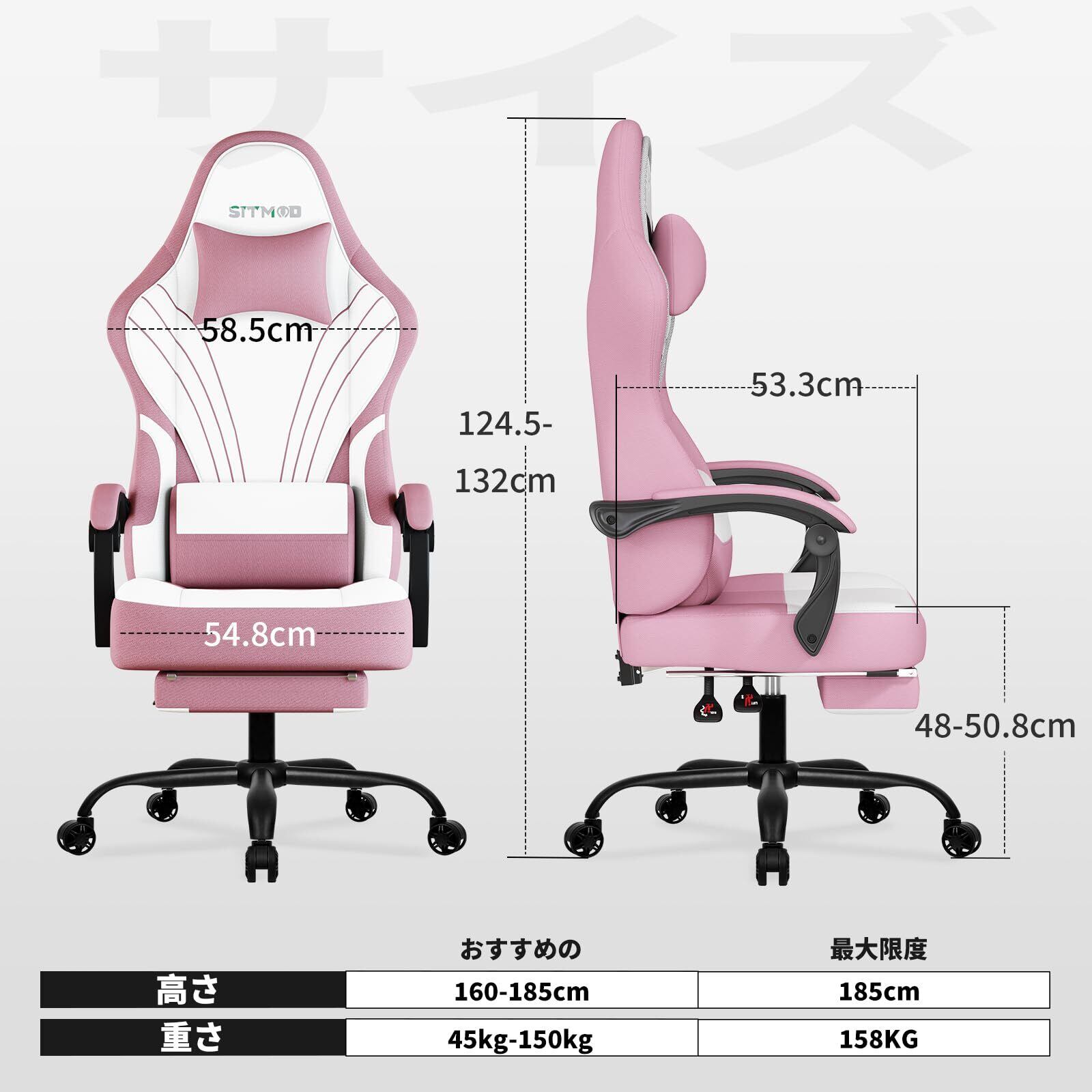 【特価セール】SITMOD フットレスト付きゲーミングチェア、人間工学に基づいた設計、ヘッドレスト・ランバーサポート付きオフィスチェア、高さ調節可能 ファブリック素材、ピンク