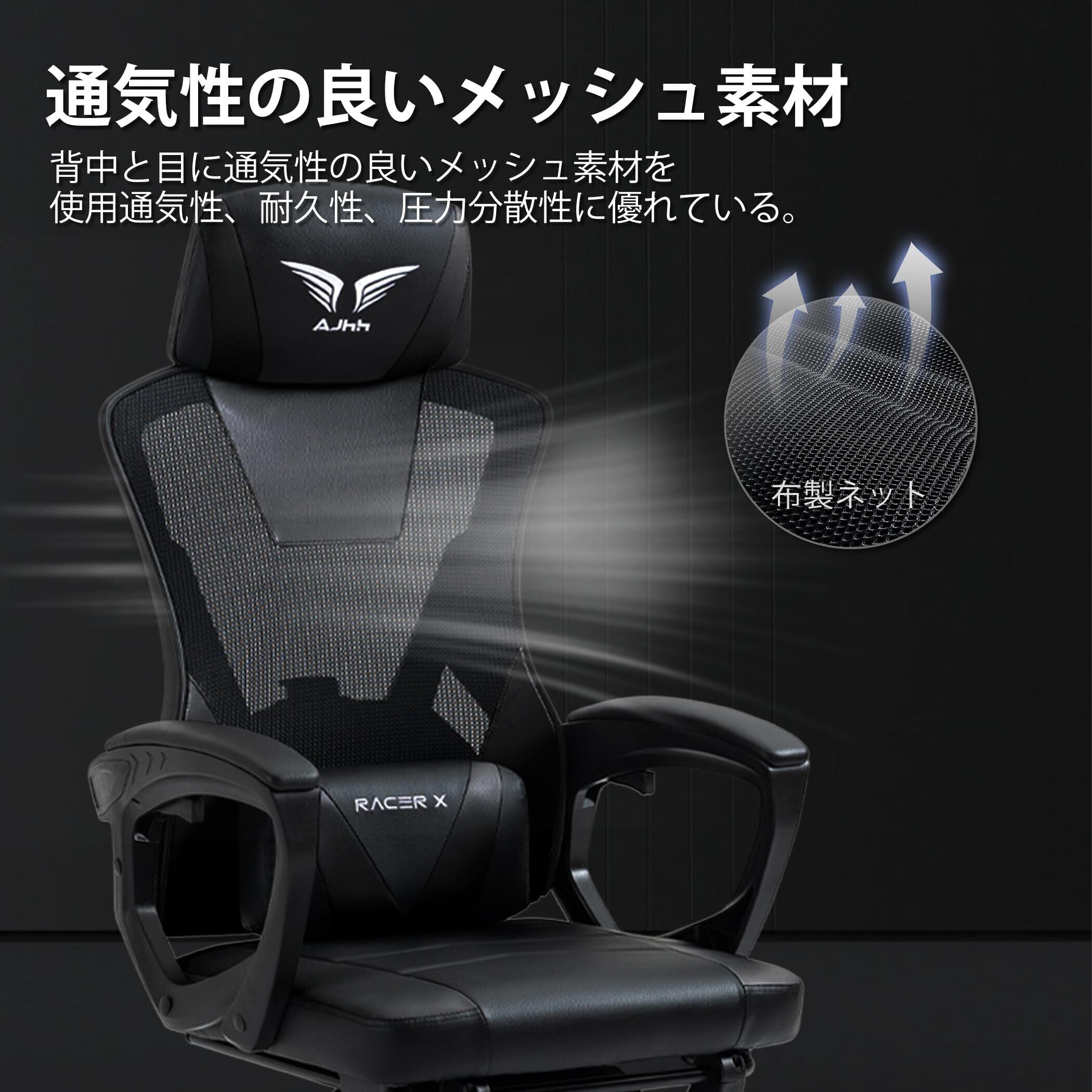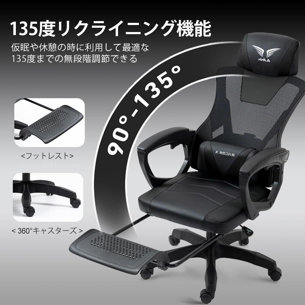 【特価セール】ゲーミングチェア メッシュ素材 げーみんぐチェア 通気性 リクライニング機能 オフィスチェア 135°ゲームチェア 高級PUレザー オットマン付き