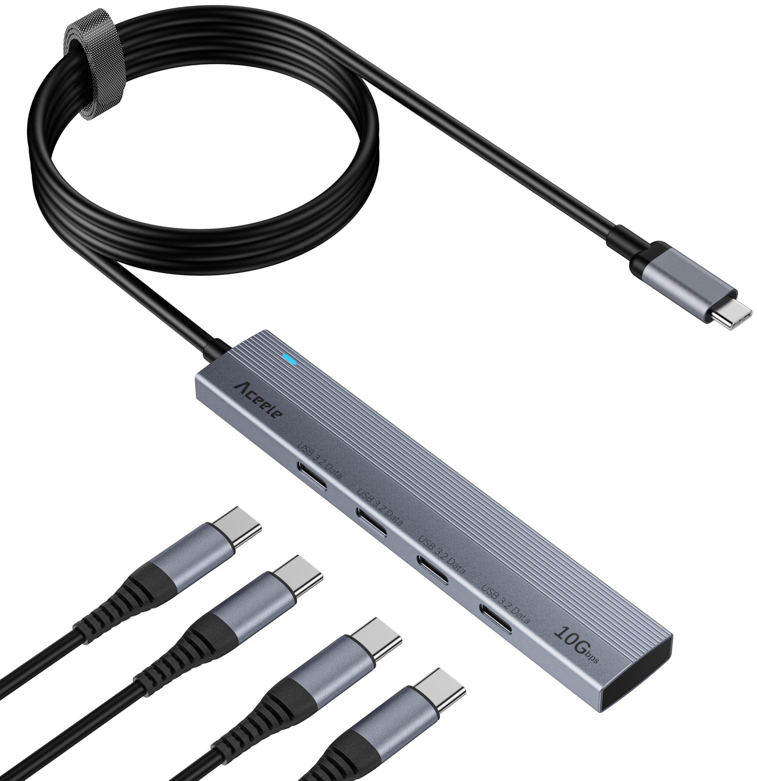 Aceele USB Cハブ10Gbps 4ポート拡張 USB 3.2 Gen 2 ハブ60cmケーブル付き 4xUSB-C ポートとType-c データポート付きUSB C to USB 3.2 変換アダプタ、MacBook Pro、iMac、iPad Pro、Chromebook、Samsung Galaxy 用 在宅勤務 ゲームに最適