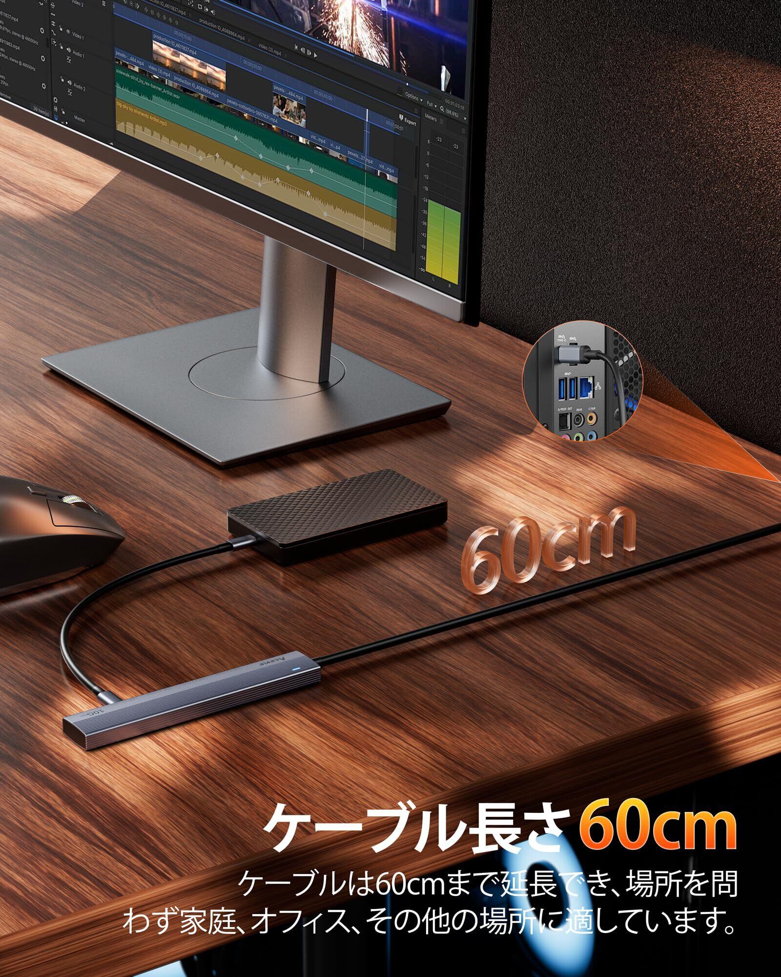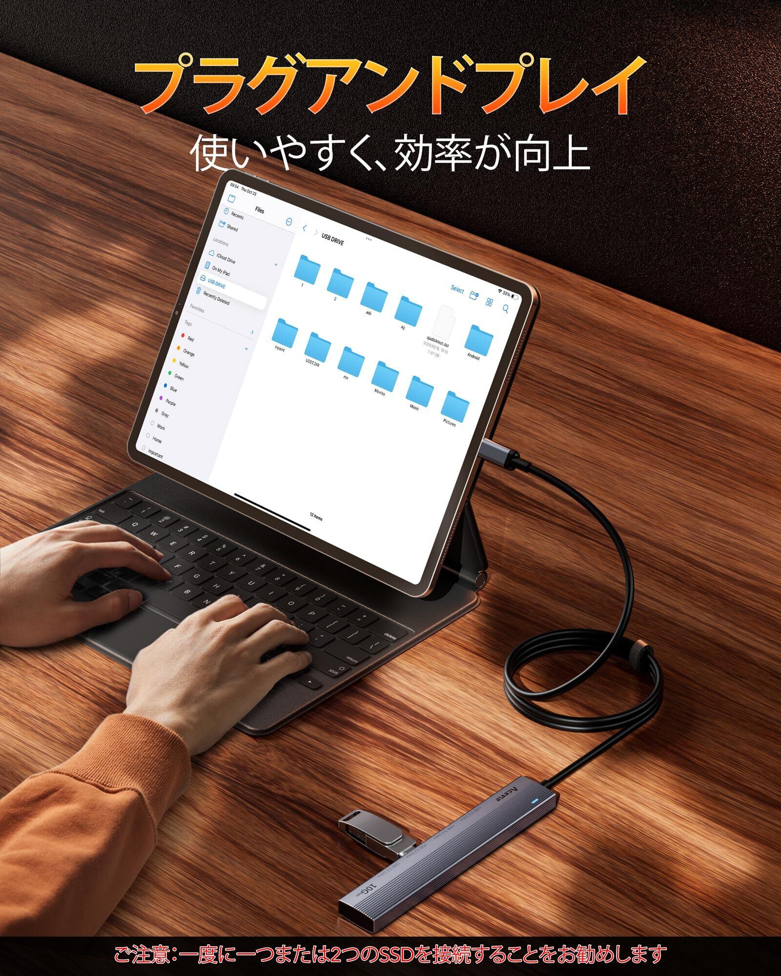 【USBハブ60cmケーブル長+ベルクロ】Aceele USBハブは超薄型形状と最小限の重量を採用しています。ケーブルは60cmまで延長でき、場所を問わず家庭、オフィス、その他の場所に適しています。付属の結束バンドを使って快適で最適な長さに調節いただけます。 毎日の持ち運び、通勤、旅行に最適なデバイスです。 あなたの生活をもっと便利に。