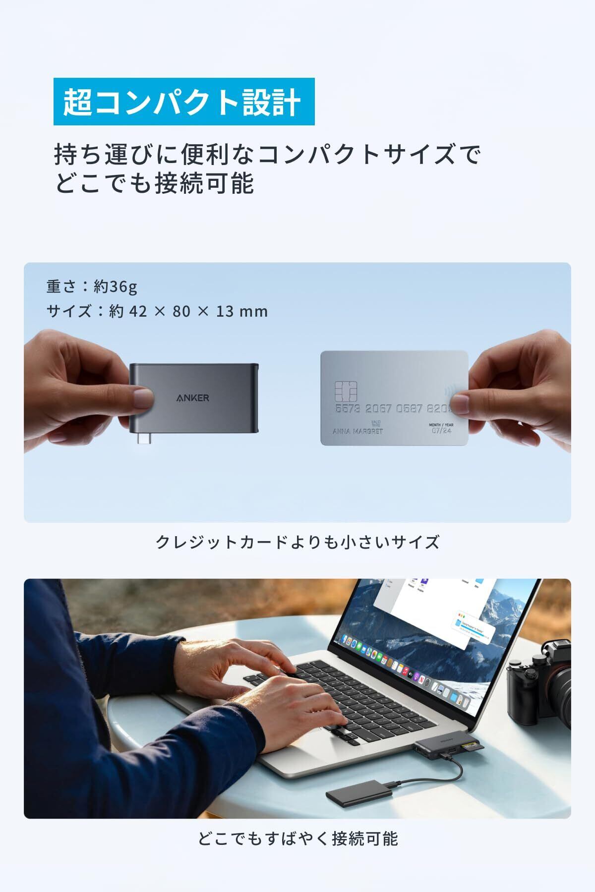 超コンパクト設計:持ち運びに便利なコンパクトサイズでどこでも接続可能