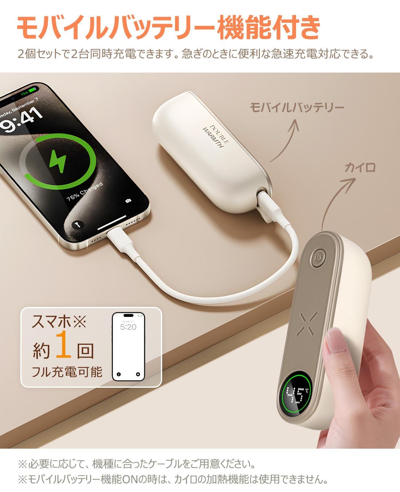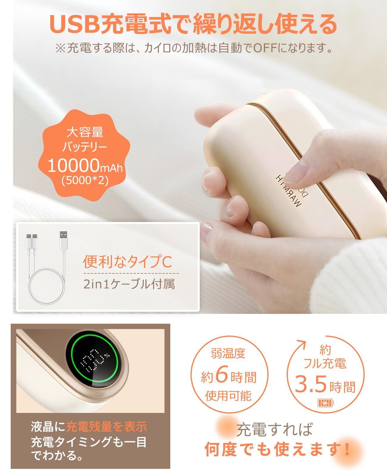 【数量限定】Kemolpo 充電式カイロ 3秒急速発熱 3段階温度調節 電気カイロ 10000mAh大容量 モバイルバッテリー機能 小型 軽量 持ち運びやすい 5V/2A急速充電 省エネ 旅行 出張 通勤 通学 寒さ対策 冬用 (ベージュ)
