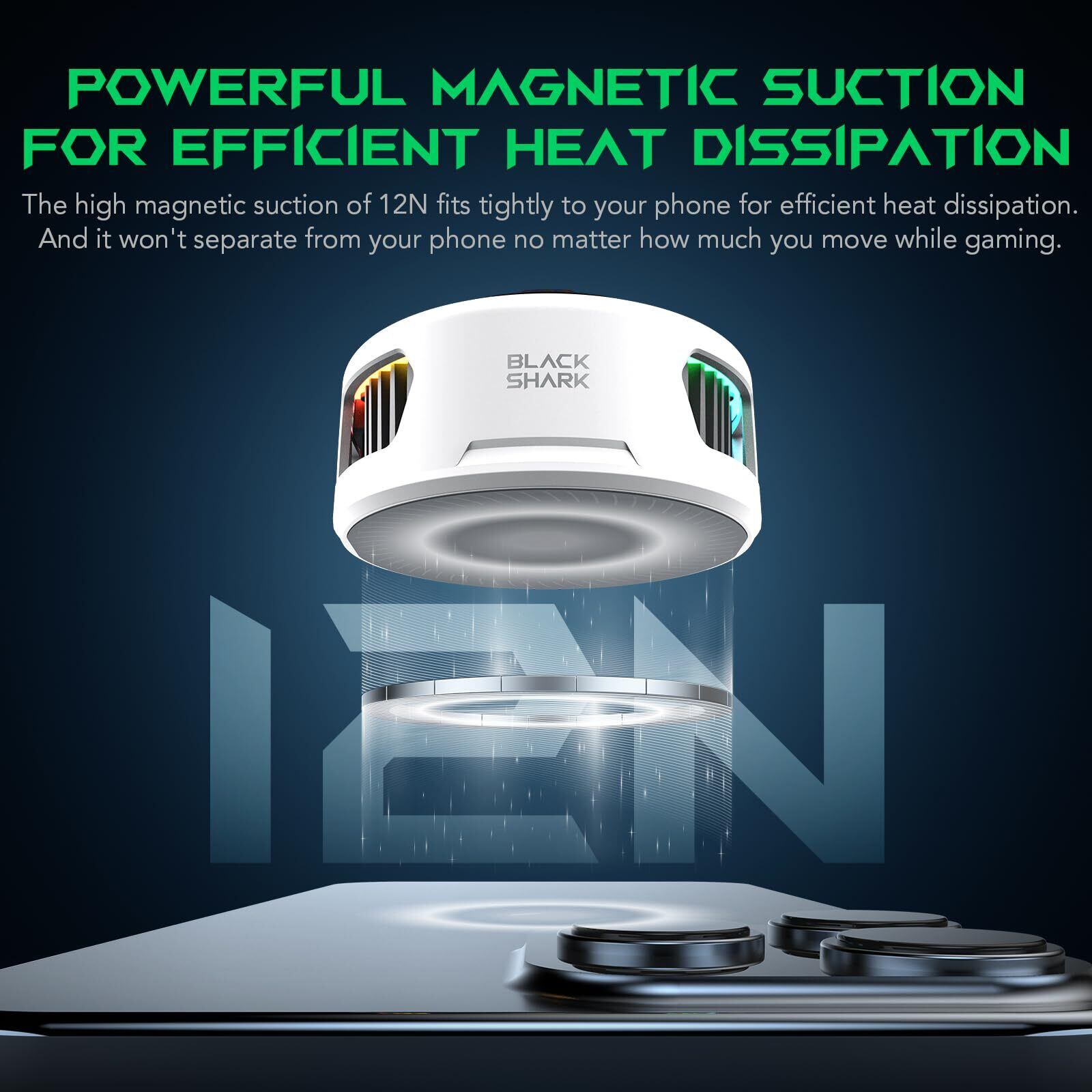 Black Shark FunCooler 5 磁気式 スマホ 冷却 散熱器、RGB冷却ファン 取り外し可能なグリップ付きの携帯電話ラジエーター、スマホクーラー iPhone Magneticシリーズ/Android 用のポータブル、ゲーム、ライブ配信、撮影に対応 (はくしょく)
