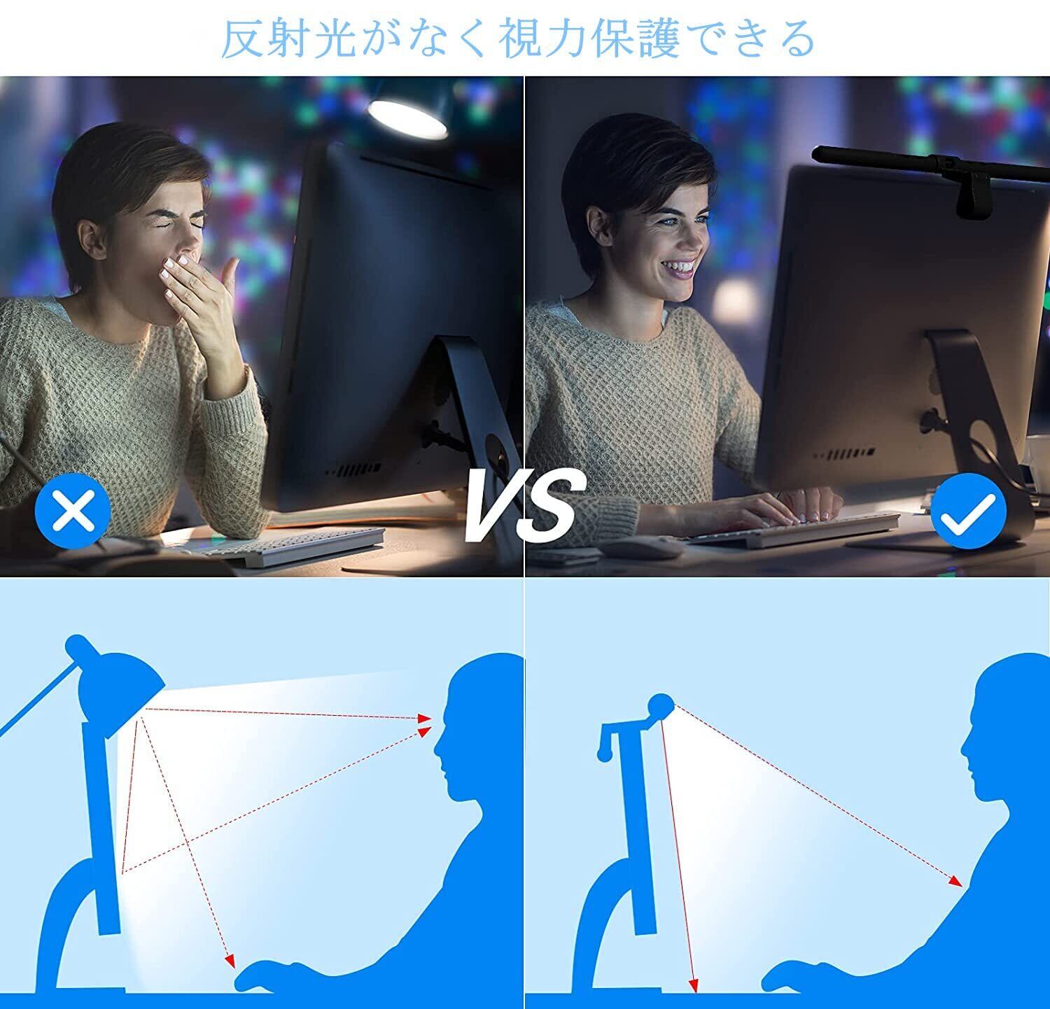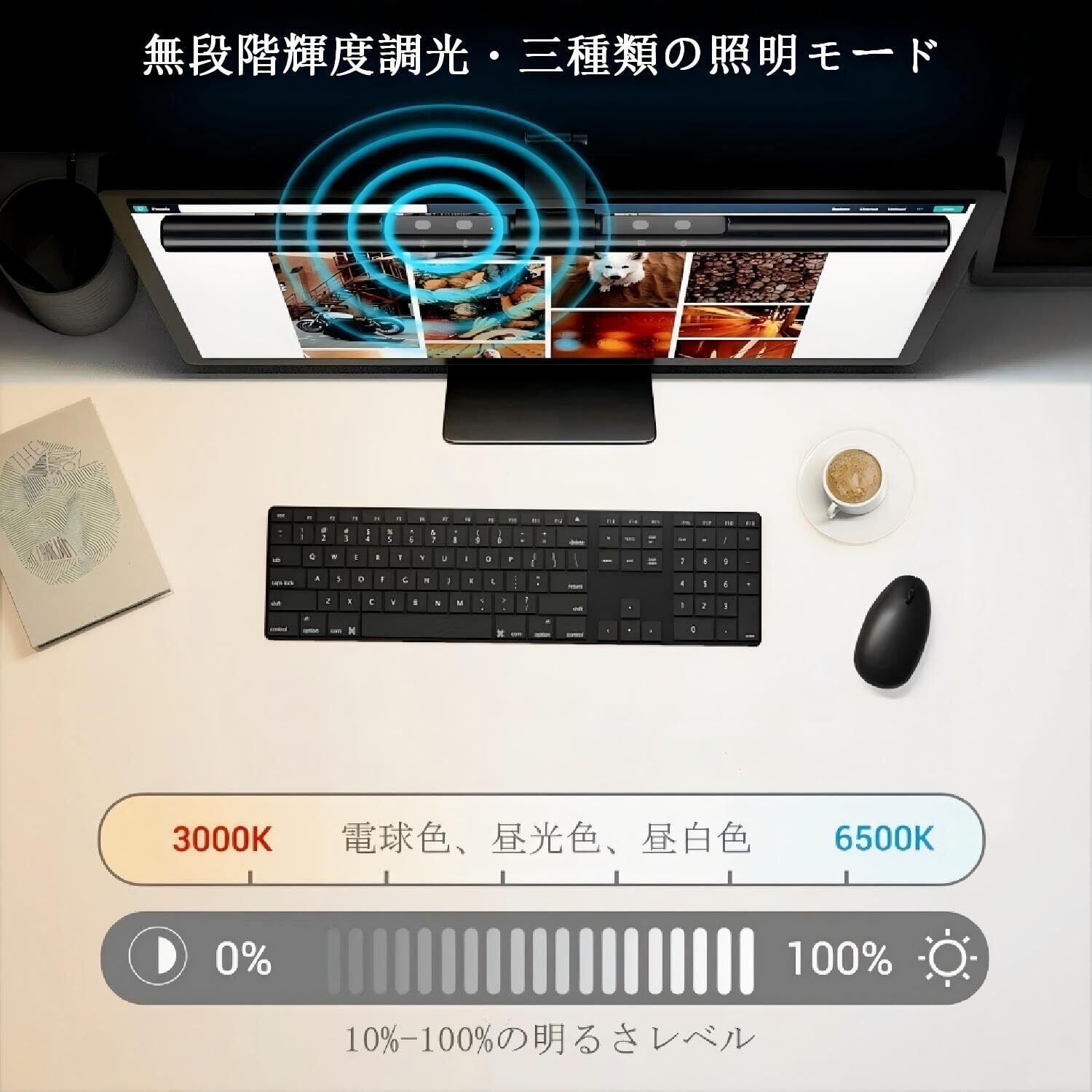 【在庫処分】Quntis モニターライト バーライト 40cm モニター掛け式 デスクライト 昼白/昼光/電球色 演色性Ra≥98 照度≥700Lux 無段階色温度と輝度調整 目に優しい 省スペース USB 厚さ0.7-3.5cmのモニター対応 Basic L205-QU