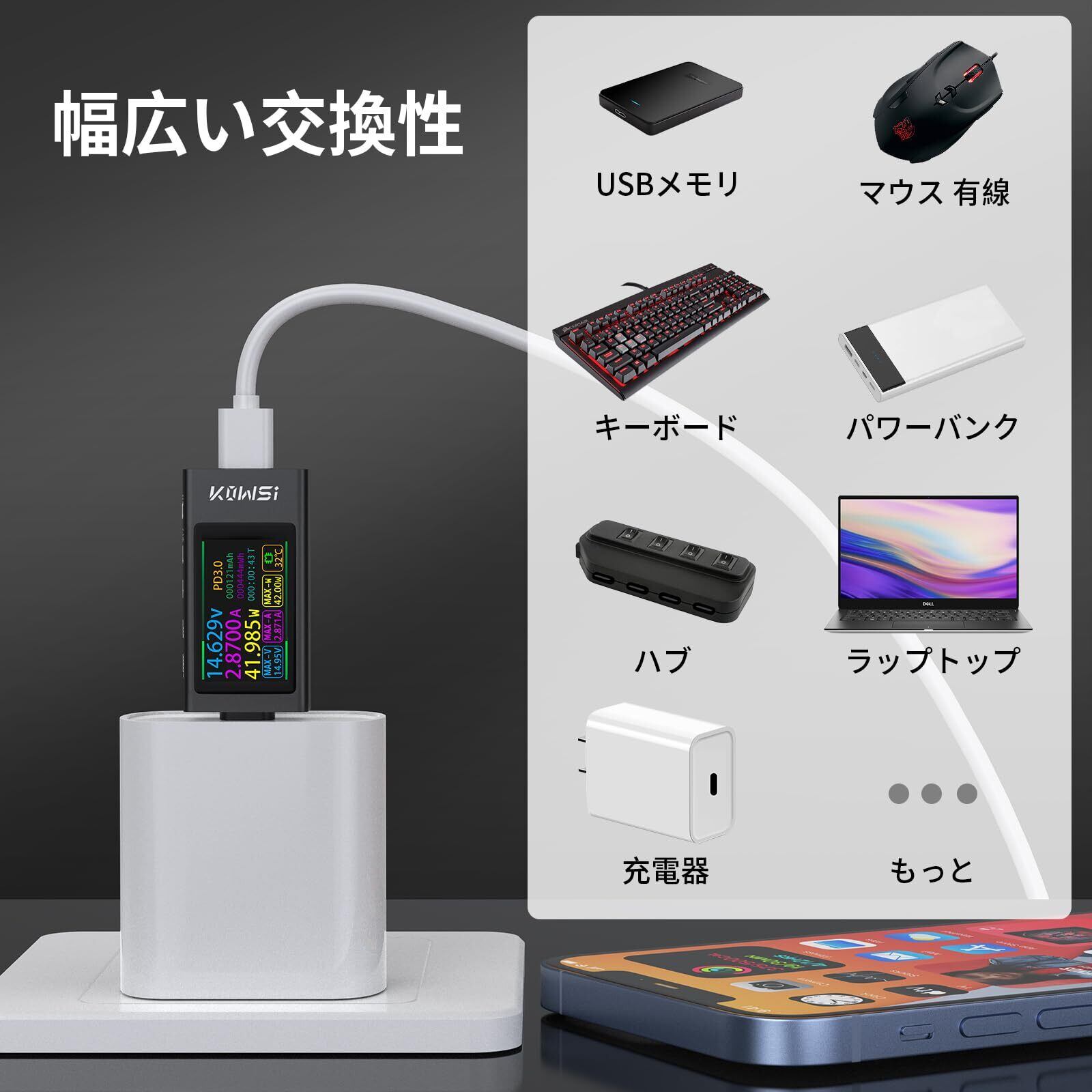 240W USBC電圧電流テスター:このUSBC電圧電流テスターは24ピンポートを採用しており、0~40V・0~6Aの高電圧・大電流に対応しています。デバイスの充電時の電圧・電流・電力をリアルタイムで確認でき、電流の最大ピーク値は12Aです(6Aを超える場合の使用は1分以内を推奨します)