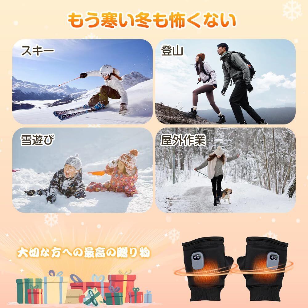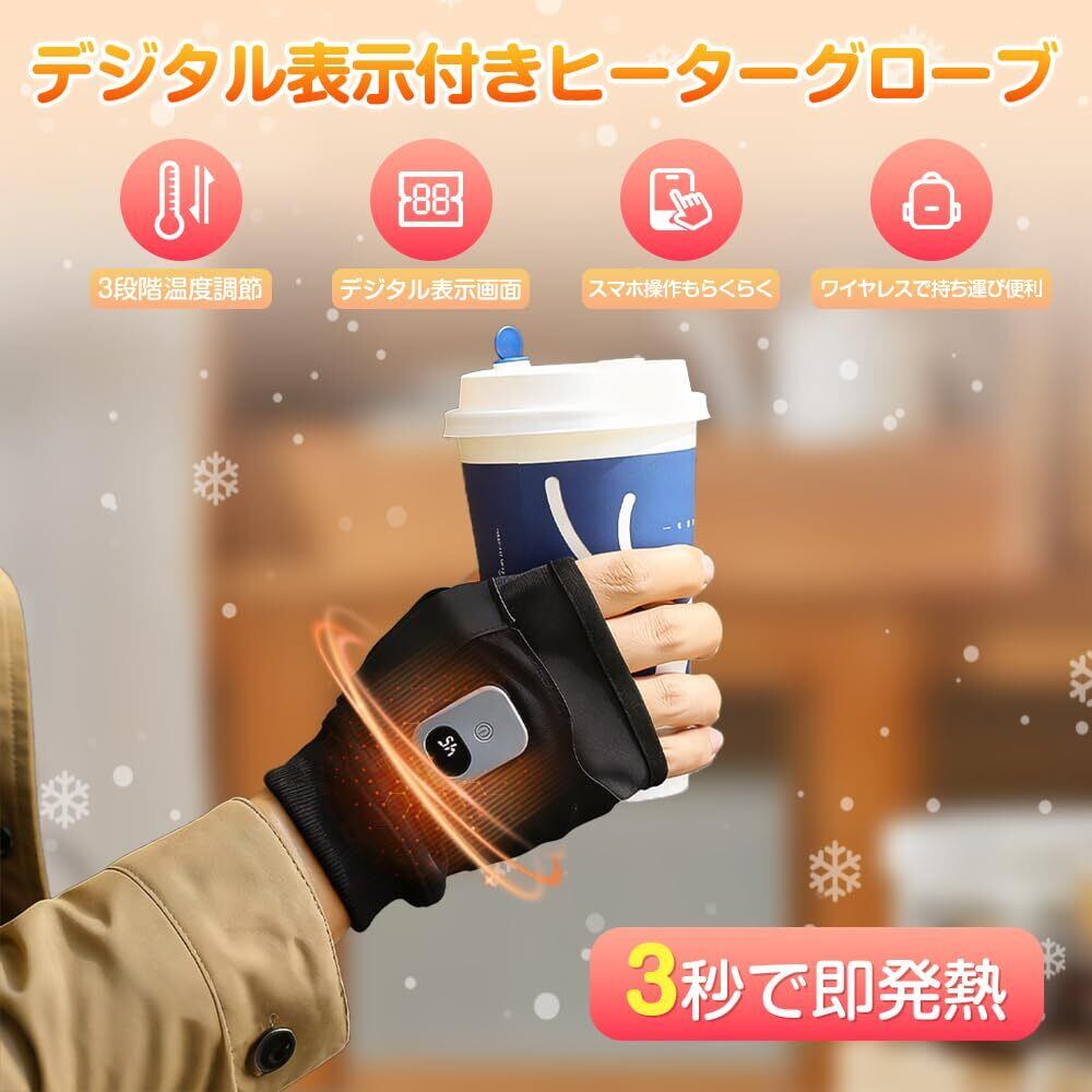 OKUYOSHI 電熱グローブ 電熱手袋 ヒーター手袋 USB充電式 3段階温度調節 LEDデジタル画面表示 指なし 男女兼用 日本語説明書付き ブラック