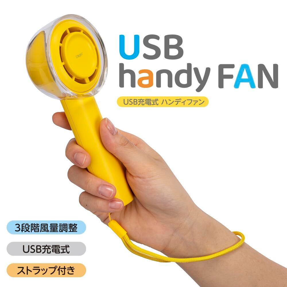 Digio2 USB扇風機 USB充電式 ハンディファン イエロー Z0592