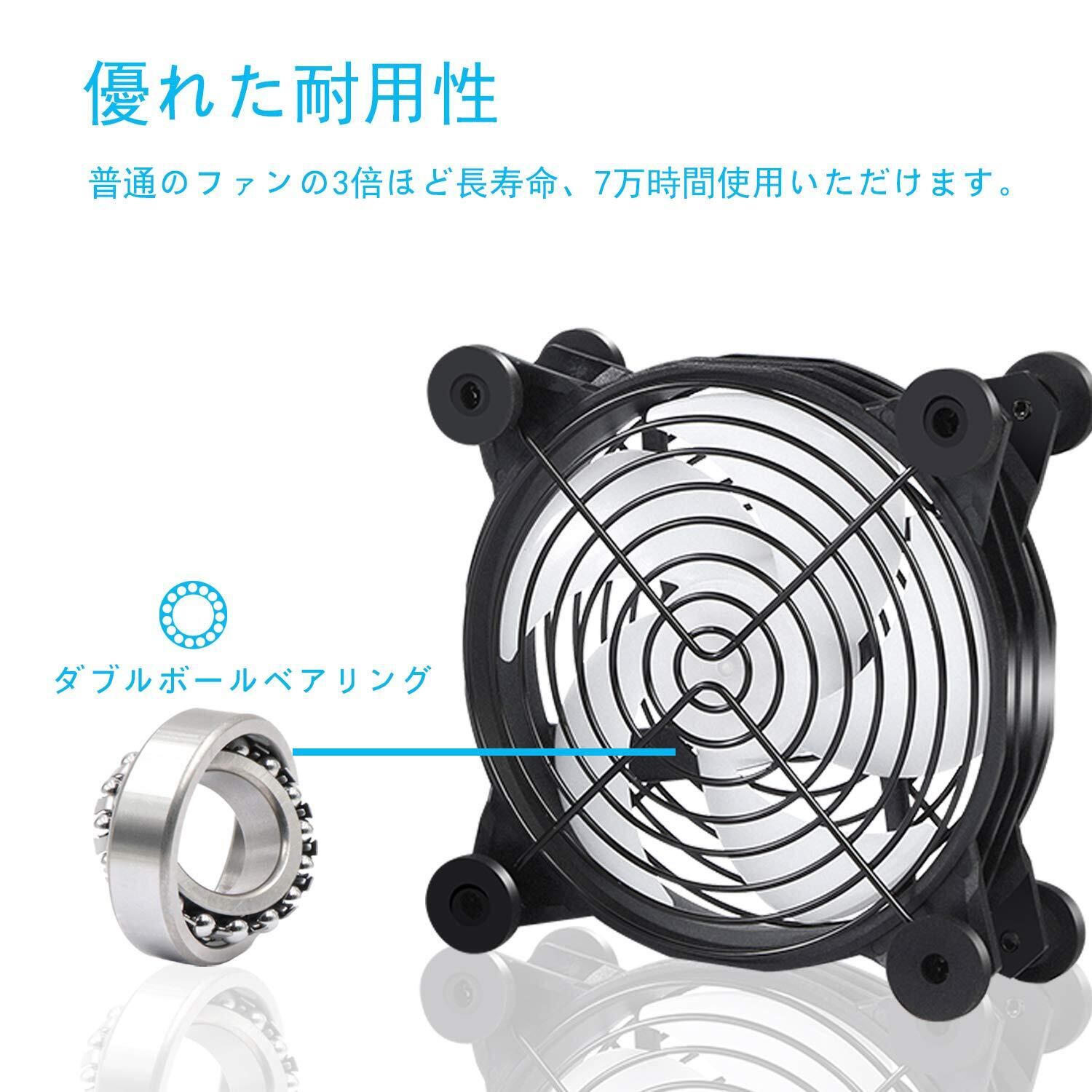 【耐久性】デュアルボールベアリングを採用、回転の安定性を確保するほか、別仕様のベアリングと比べてもっと長くご使用頂けます。風量:1800PRM強力風量で、快速に冷却できます。 約7000時間の理論寿命あり、使用するにつれて、騒音の増加にならず、24時間連続稼働可能。