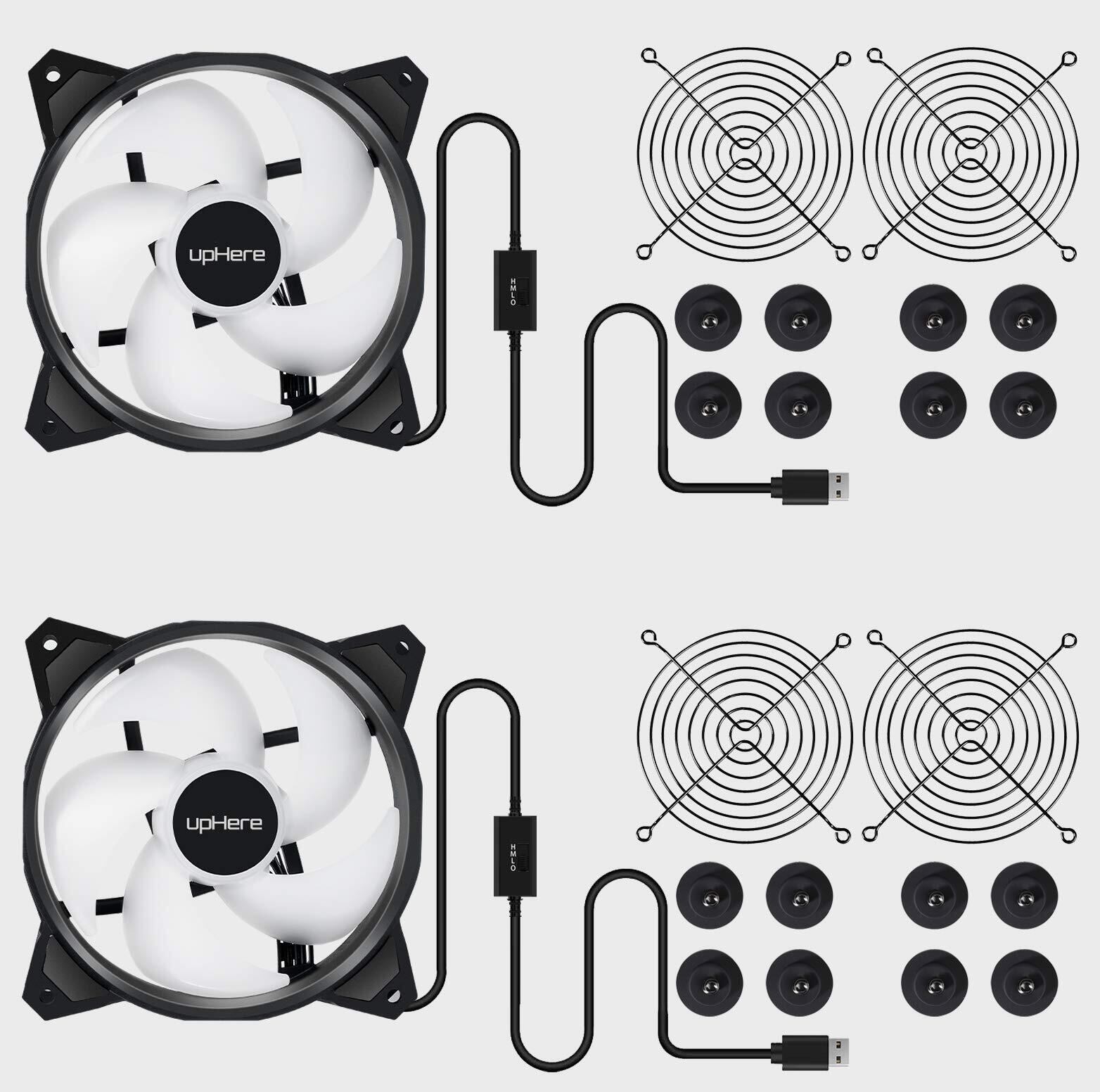 【特価商品】upHere 120mm USB扇風機 USB冷却ファン ミニ送風機 虹色 静音タイプ 3段階調節 (2本1セット)