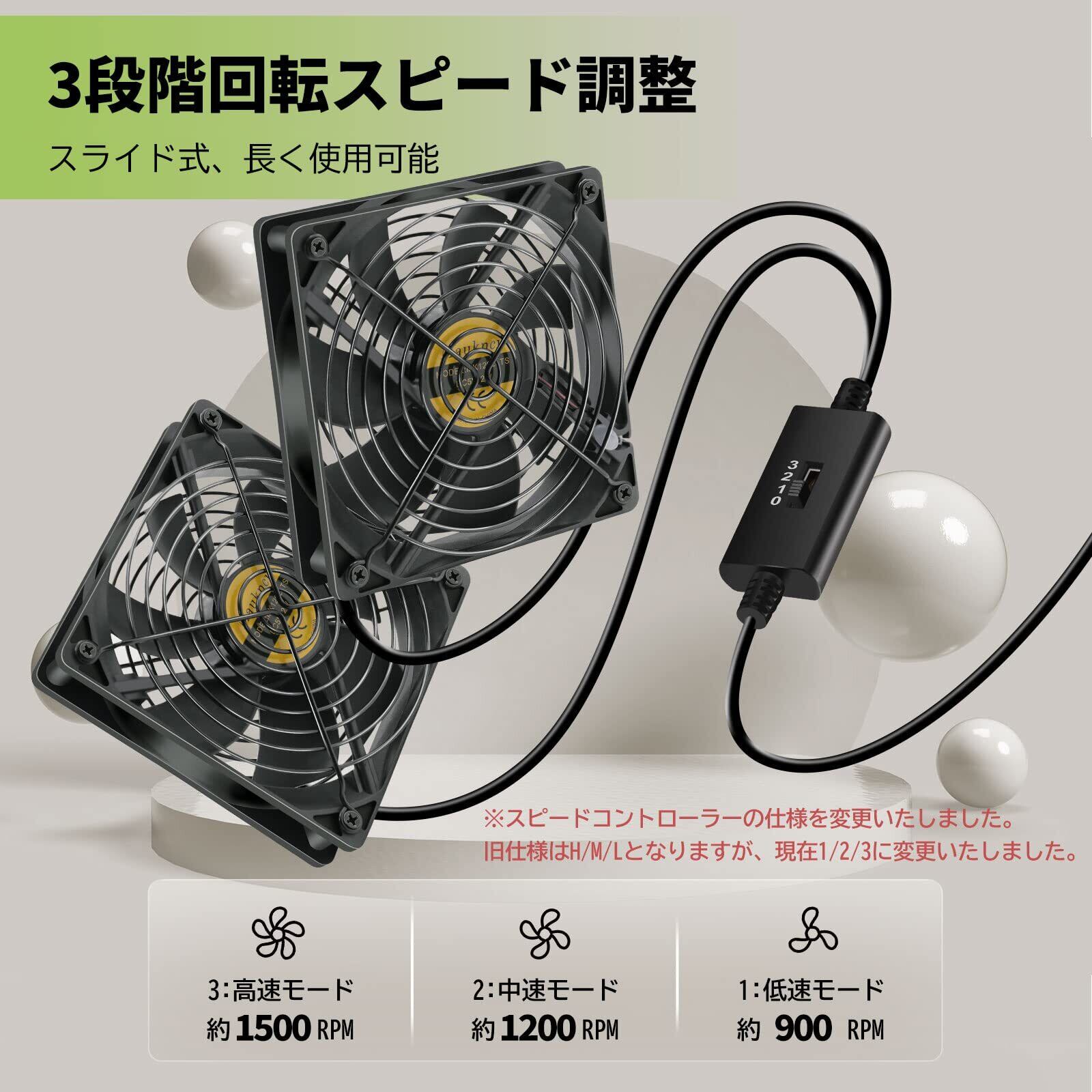 【在庫処分】静音 USBファン 12cm 3段階風量調整 冷却ファン 2台1組 長時間稼働可 5V ファン 120mm ブラック