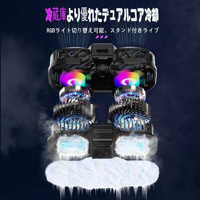 【LED温度表示・RGBライト効果】従来品に比べて、本冷却ファンはLED温度表示が付き、スマホの温度が一目瞭然になります!動作中にRGBライトを点灯しているので、ゲームの没入感を高めます。