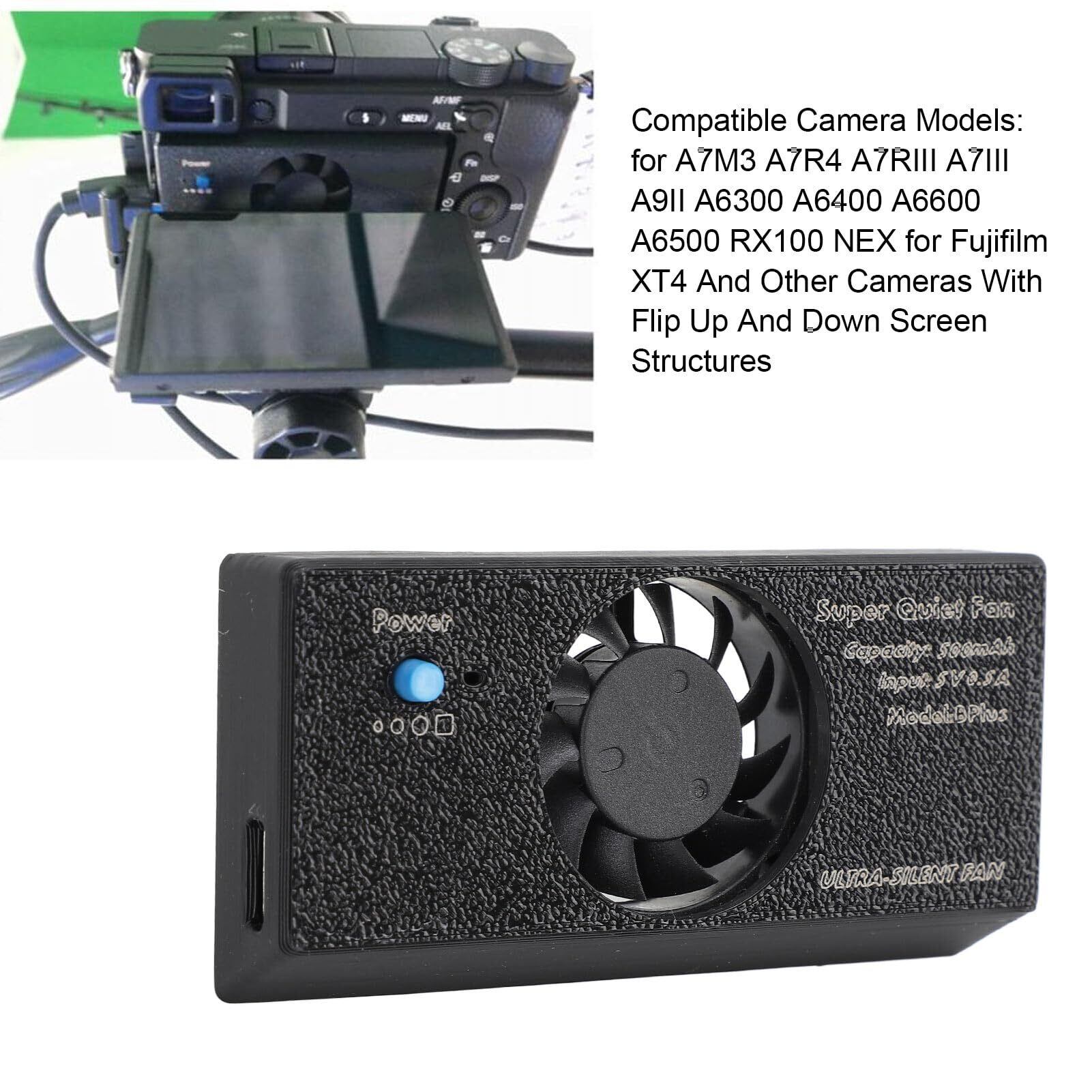 【数量限定】カメラクーラー 扇風機 カメラ用冷却ファン カメラ用ラジエーター 発熱対策 風量調節可 3モード動作 静音設計 軽量 排熱 タイプC充電式 XT4 カメラのA7M3 A7R4 A7RIII A7III A9II A6300 A6400 A6600 A6500 RX100 NEXに適用