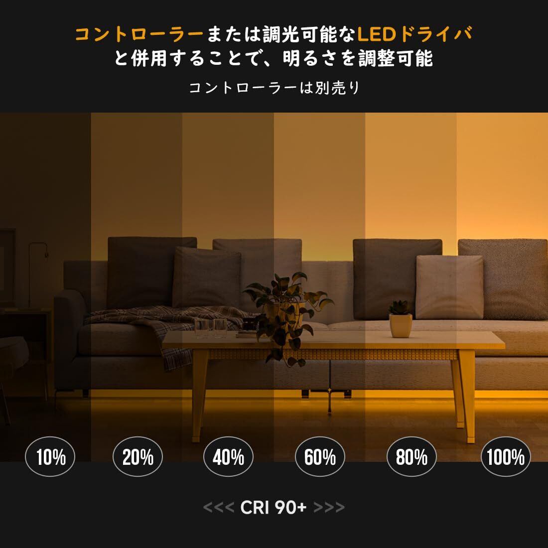 「省エネ」 FCOB単色シリーズのLEDテープライトはより省エネです。 調光可能で、寿命は30000時間以上と耐久性に優れています。 また、2年間の安心と24時間のカスタマーサービスを提供します。調光器は含まれていませんのでご注意ください。また、光の減衰率は1000時間後に3%未満になり、光の減衰率は3500時間後に30%未満になります。ご注意してください。