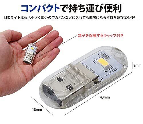 サイズ(約):43×18×9mm LED数:2灯 (片面 1灯ずつ) 電圧:USB 5V 効率:1.0W相当 重量(約):5g 材質:PC 入数:1個