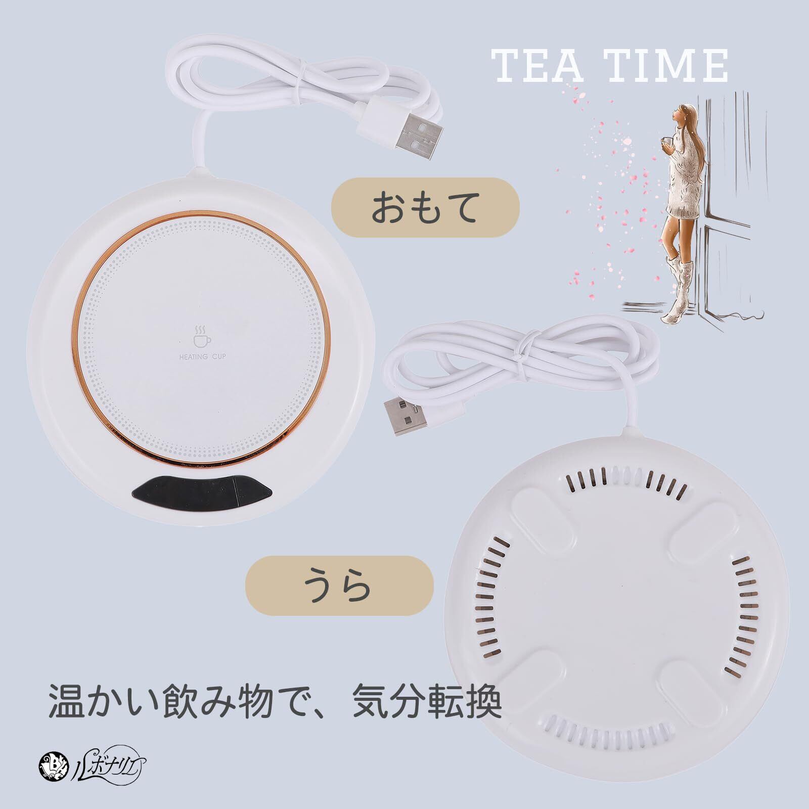 ルボナリエ カップウォーマー usb コーヒーウォーマー 保温コースター USB 3段階切り替え 自動電源オフ 8時間 55℃ 65℃ 75℃ (ホワイト)