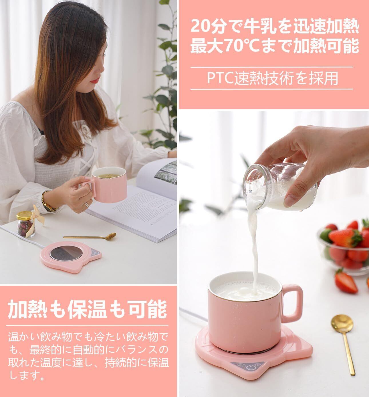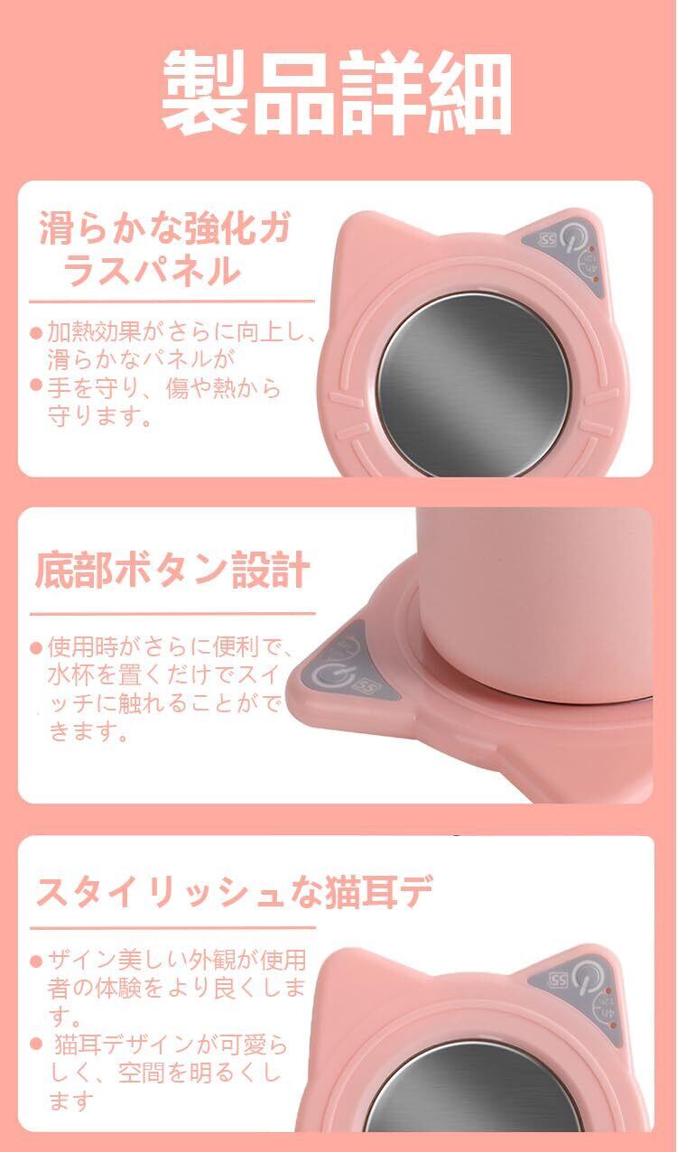 【どんなシーンでも使える】この加熱カップマットは優れた加熱性能を持っています。可愛い猫耳デザインはあなたのコーヒーアングルを飾りながら、飲み物を理想的な温度に保ちます。USB電源ケーブルが付属しており、家、オフィス、寮、その他どこでも使用できます。