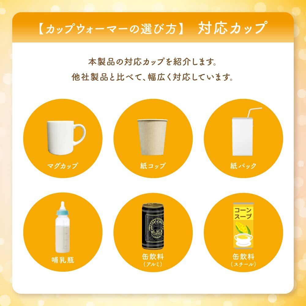 【紙コップにも対応】:付属の紙コップ用プレートを使用すればコンビニのコーヒーもずっと温かいまま。紙コップの他にマグカップ、紙パック、哺乳瓶、缶(アルミ、スチール)にも対応。(対応する紙コップ:底面直径4.8cm以上、上げ底1cm以下、紙の材質)