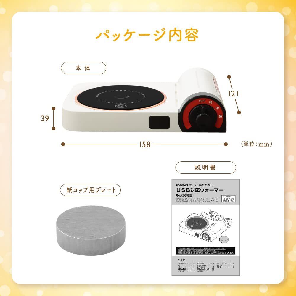 USB対応 カップウォーマー 紙コップ 缶 哺乳瓶 マグカップ 保温 卓上 デスク オフィス コースター 3段階温度調整 国内メーカー ホワイト