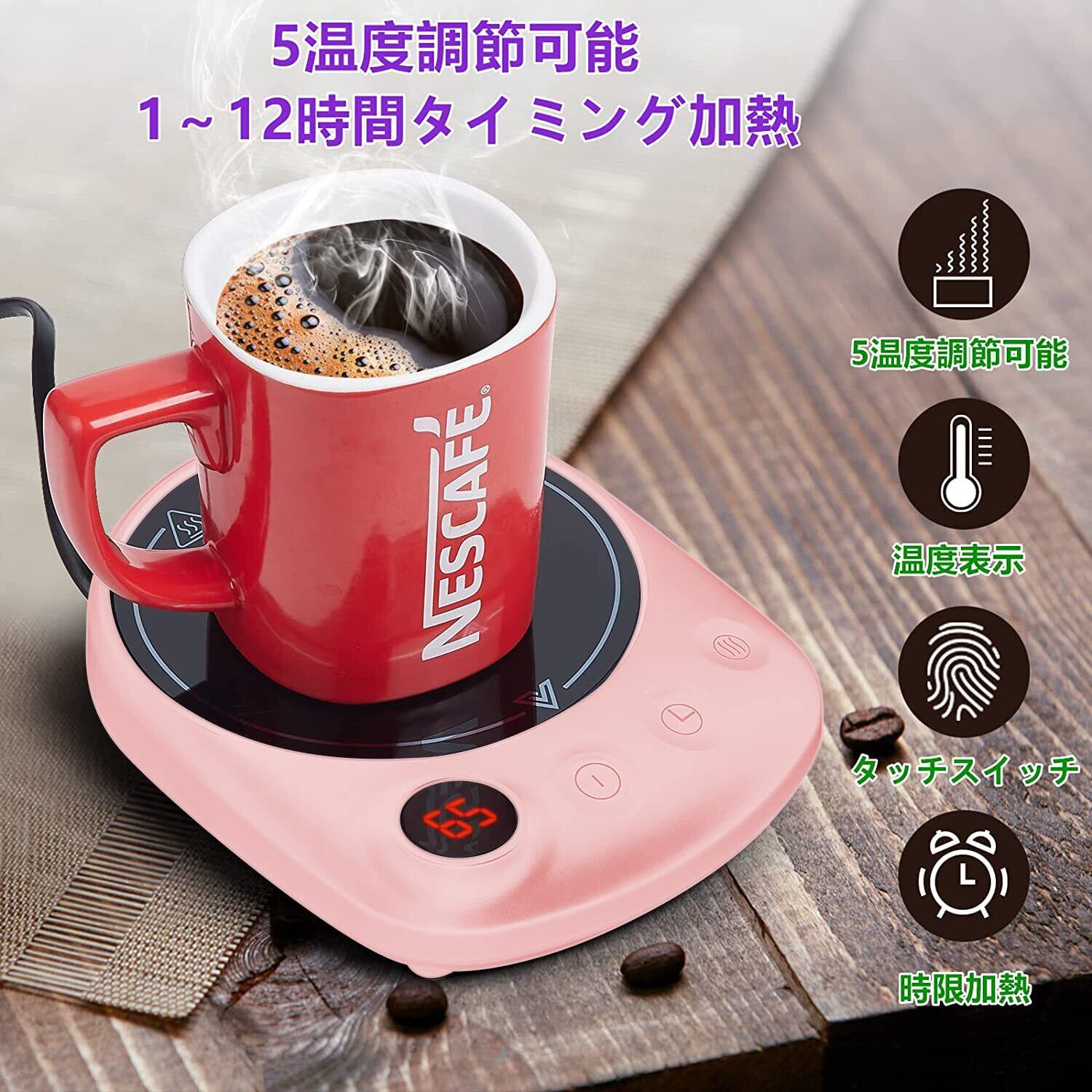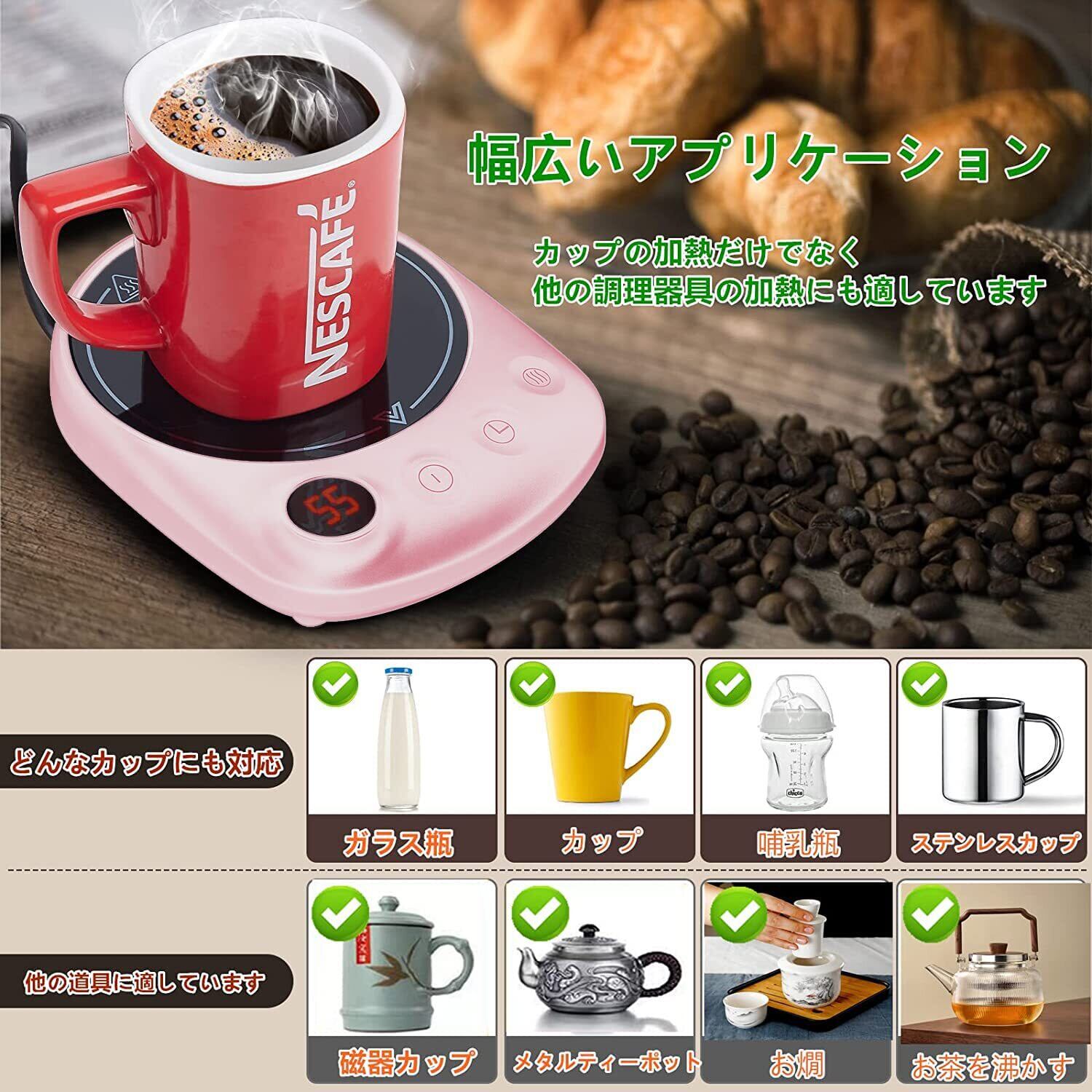 【特価セール】カップウォーマー オフィス用コーヒーウォーマー 電気酒燗器、4段階の温度設定 、温度表示付き、1-12時間自動オフ ココア/水/牛乳/お酒/お茶/コーヒーなど 飲み物暖房 AC100V PSE安全認証済(50/60Hz全国対応) (ピンク)