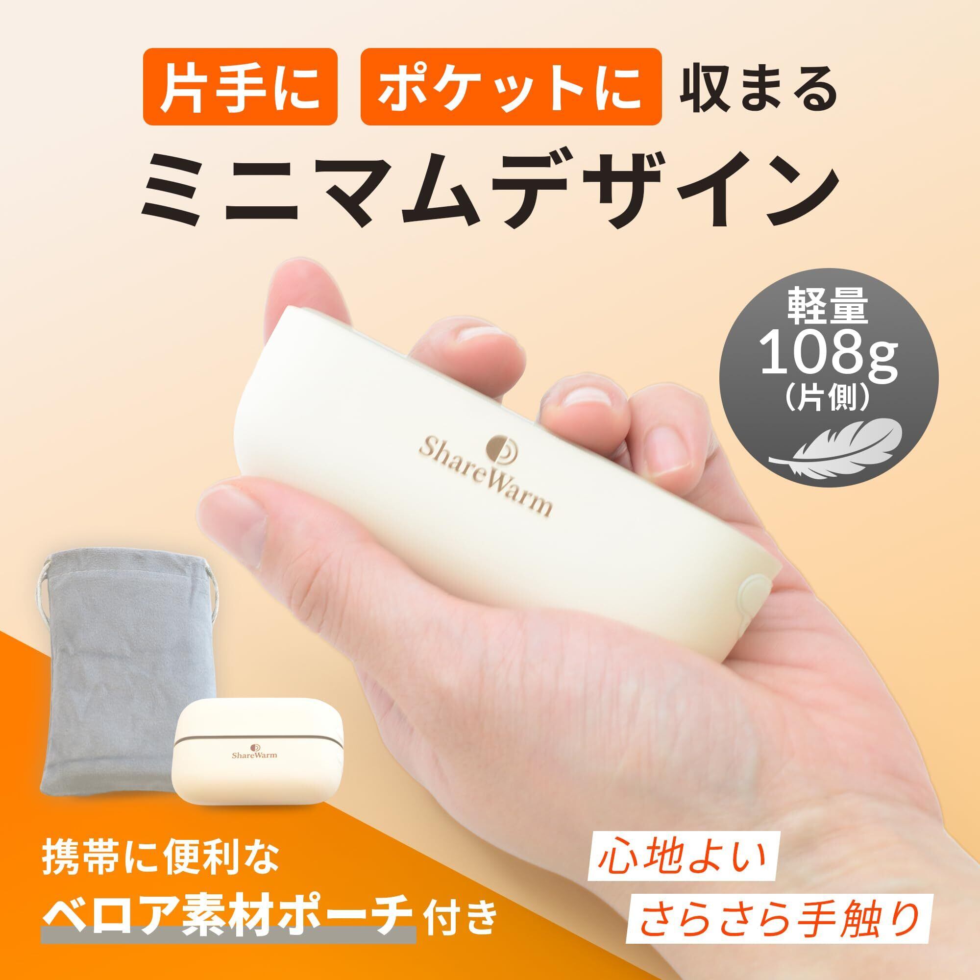 【コンパクト設計の逸品】片側わずか108gの軽量設計でポケットにすっぽり収まる充電式カイロ。さらさらとした質感で心地よく使える表面素材を採用した電子カイロです。おしゃれなベロア素材のミニトラベルポーチ付きで持ち運びも便利。マルチ充電コードで2個まとめて充電できるUSB対応のモバイルカイロです。