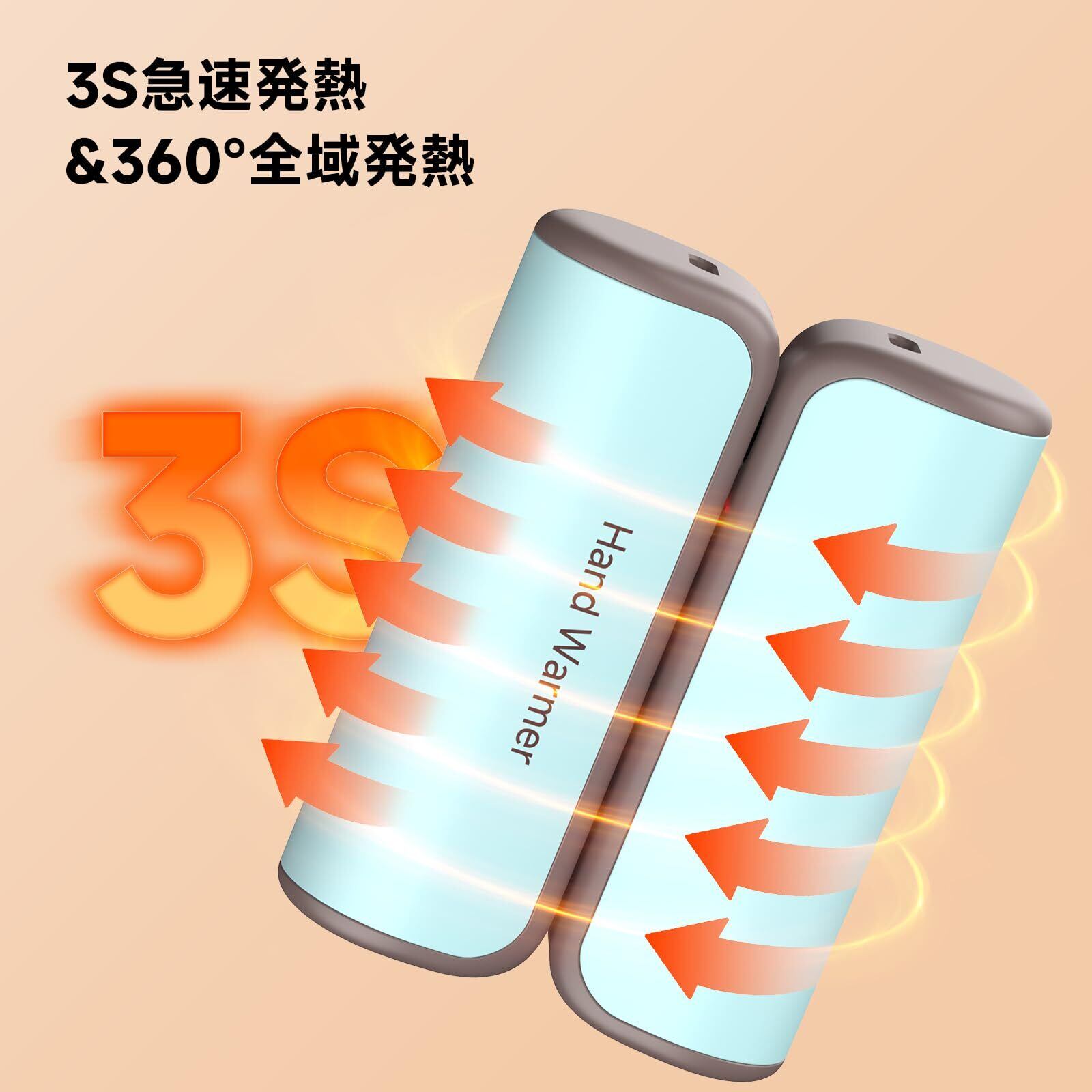 【3秒急速発熱✚360°全面発熱】この充電式カイロは、電源を入れてわずか3秒で温かさを感じられます。真冬の厳しい寒さや指先の冷えが気になる時でも、すぐに暖かさが広がり、快適に過ごせます。カイロ全体に360°の発熱体を配置し、急速かつ連続的に温めることが可能です。さらに、繰り返し充電して使えるため、ゴミが出ず環境にも優しい設計となっております。使い捨てカイロよりも高い保温性を持ち、手元をしっかりと暖めてくれるため、外出時やアウトドアでも大活躍間違いなしです。