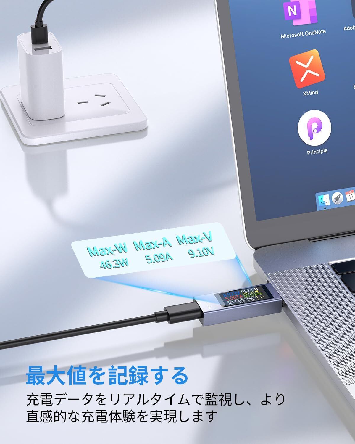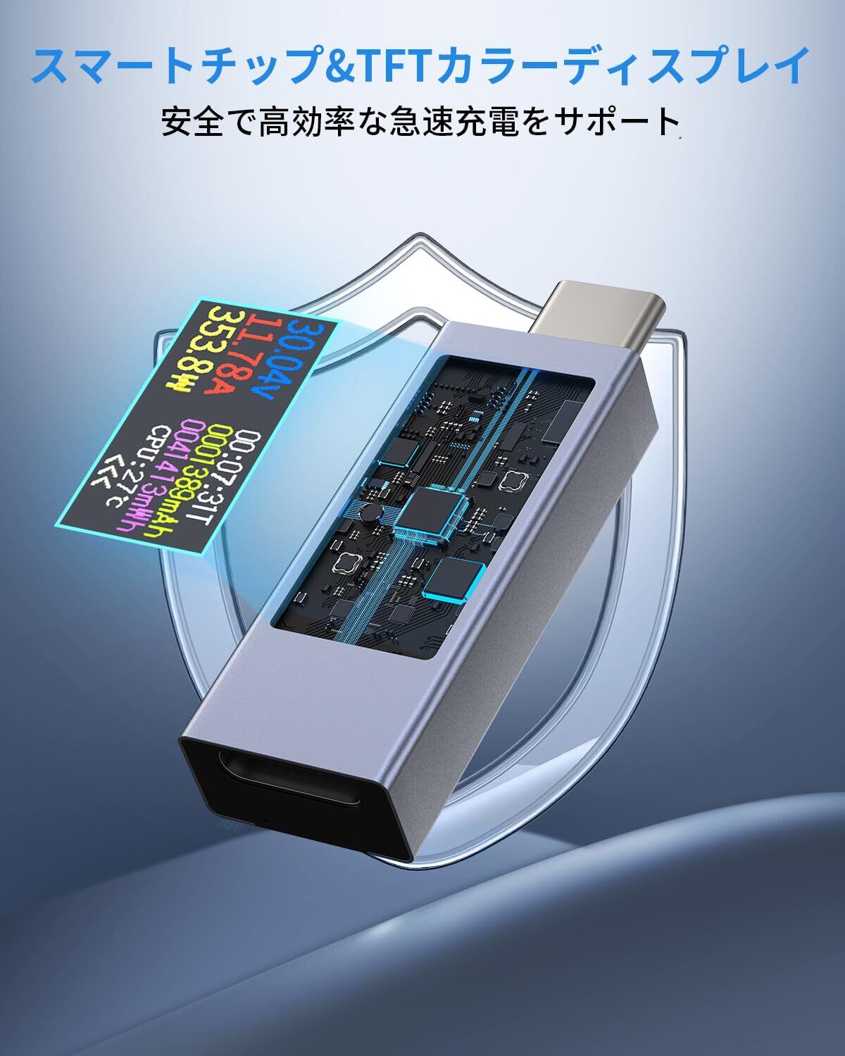 幅広い交換性:このUSBマルチメーターはタブレット、充電器、モバイルバッテリー、ケーブルなどのUSB-Cデバイスを対応でき、スマートチップを搭載し、Cポートにほとんど対応でき。
